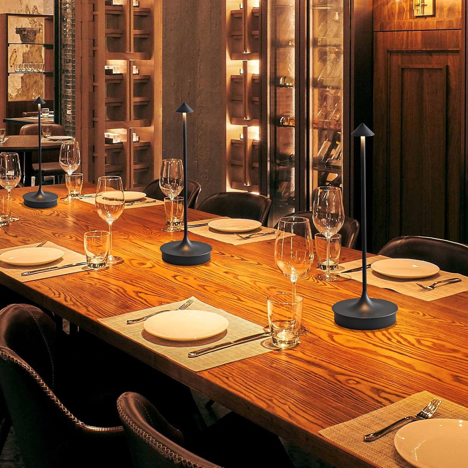 - 【IP54 WATERPROOF INDOOR/OUTDOOR TABLE LIGHT】 In addition to being placed at home, cordless table lamp is ideal for outdoor use. The rechargeable lamp has an IP54 protection rating and is waterproof and dustproof. The lamp base is made from up to 4 inches of thick die-cast aluminum, making it less likely to be blown over easily by the wind. battery operated table light can also be placed in commercial places such as restaurants.
