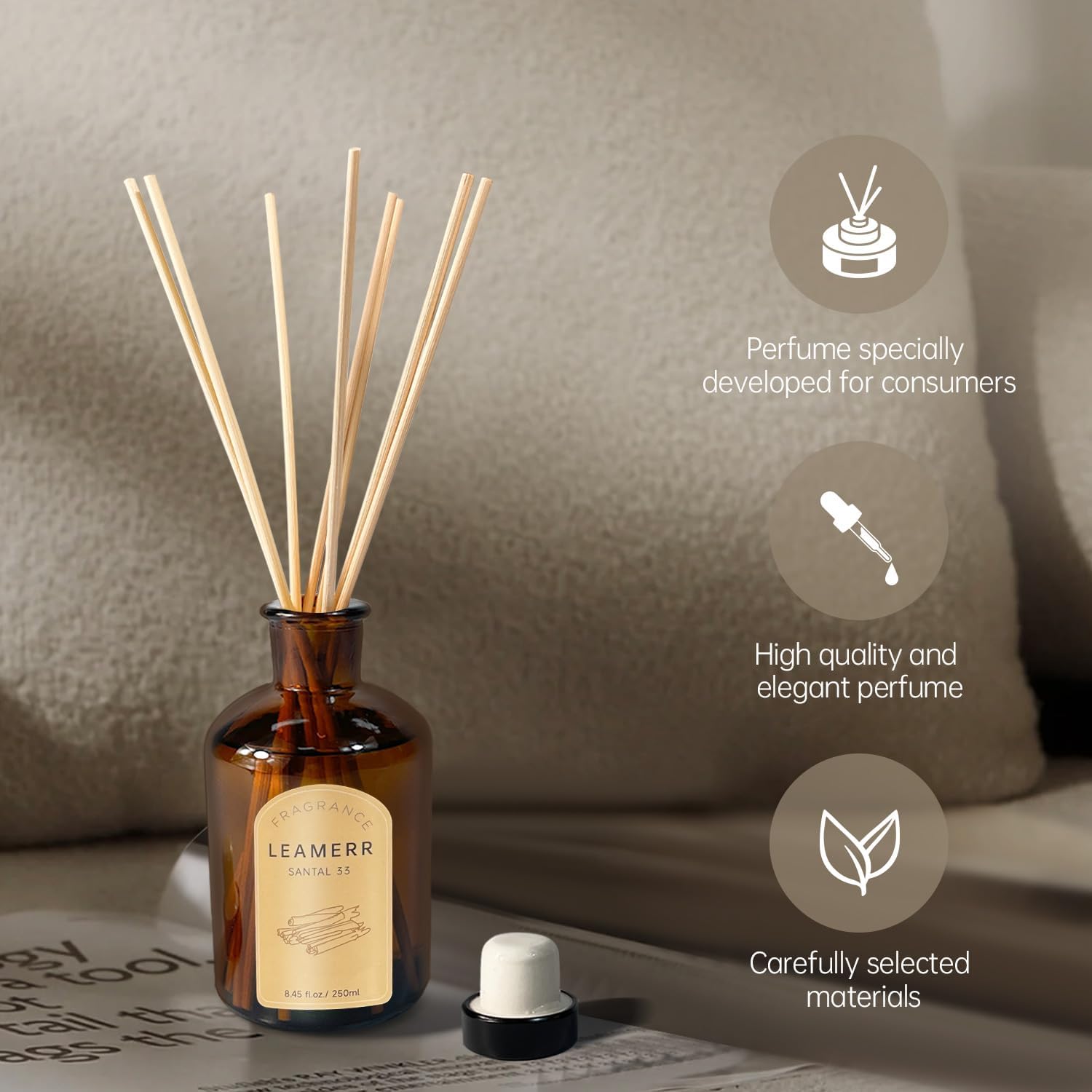 Premium Reed Diffuser Set - 8.8 oz (250 ml) Bedroom Bathroom Living Room Home Fragrance Products SANTAL33 Scent 1 Pack