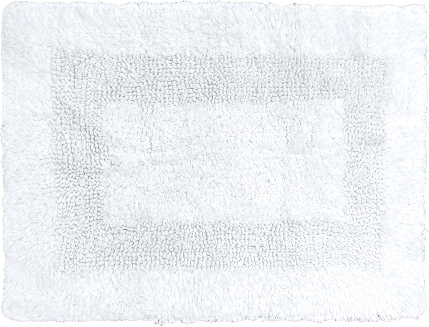 Cotton Bath Mat Rug for Bathroom - White, Reversible Bath Rugs Soft & Absorbent Quick Dry Mats, Washable Plush Hotel Quality Tufted Floor Step Out Mat for Bath Tub, Shower, Toilet - 17x24 Inches