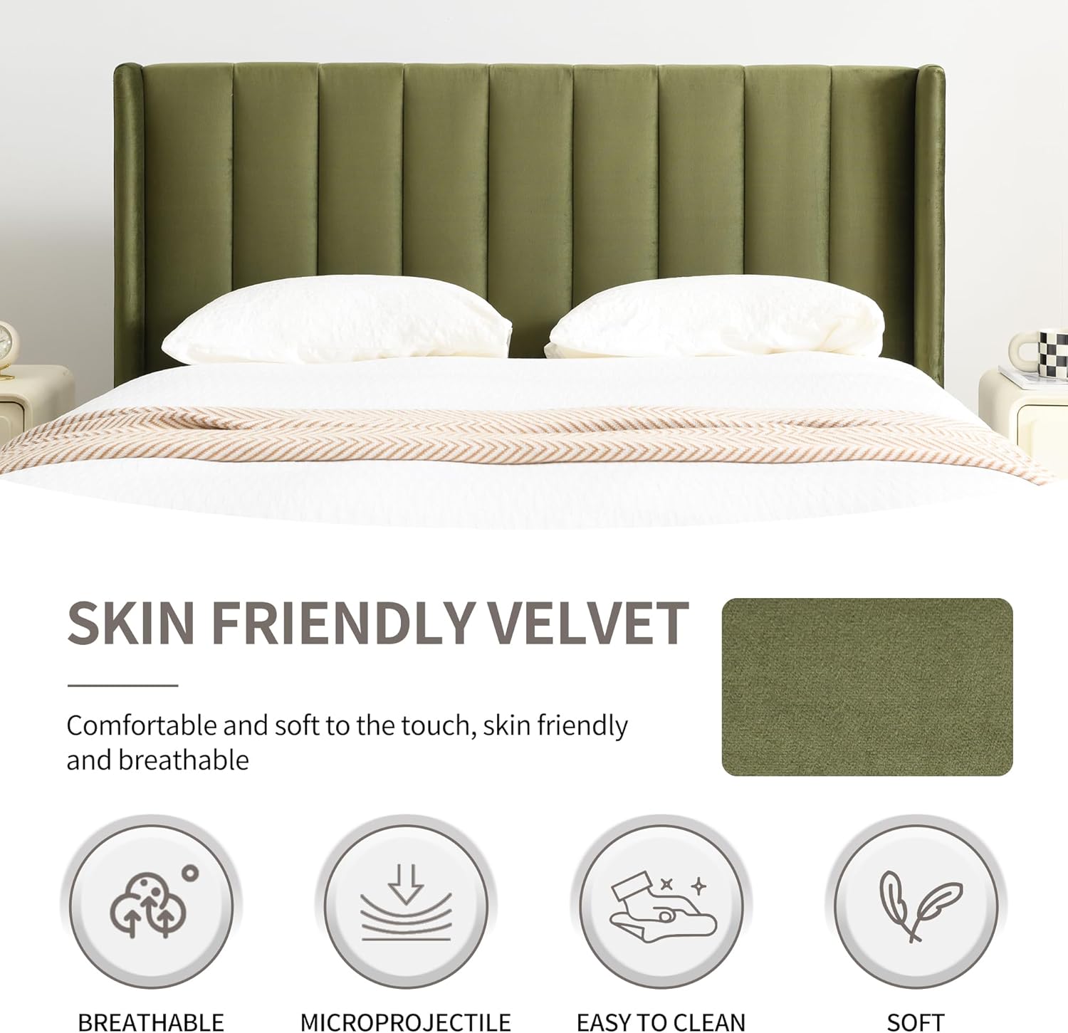• [SIMPLE AND COZY HEADBOARD] Modern style stylish wingback design with a velvet fabric covered headboard surface brings a chic vibe to your bedroom.