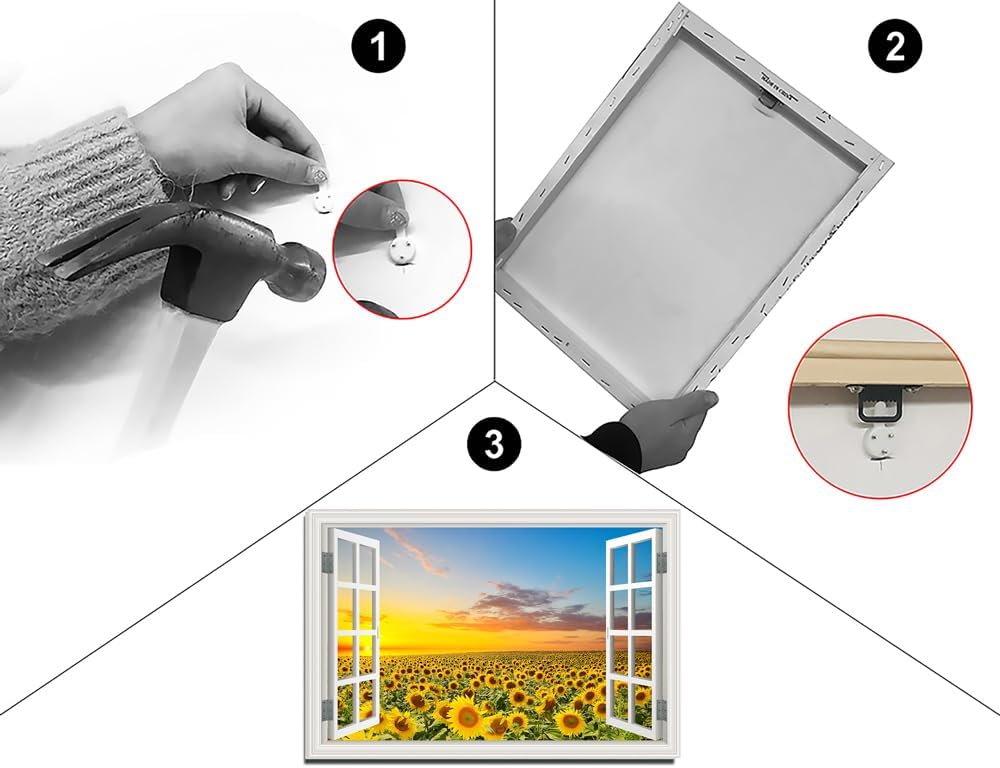 • Canvas Size:32"x48"(80cmx120cm), fake window view sunflower canvas wall art for home decoration