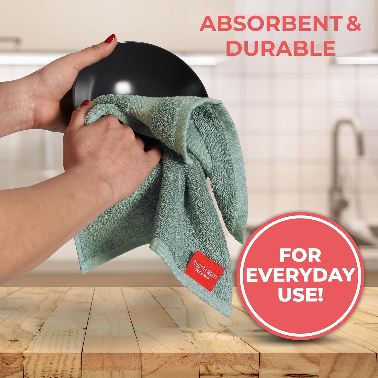 TEXTILOM Washcloths for Body and Face – Hotel and Spa Quality & Soft & Absorbent & Quick Dry Wash Cloths for Your Body – 100% Turkish Cotton Wash Clothes Towel Set of 4 (13 x 13 inches) - Green