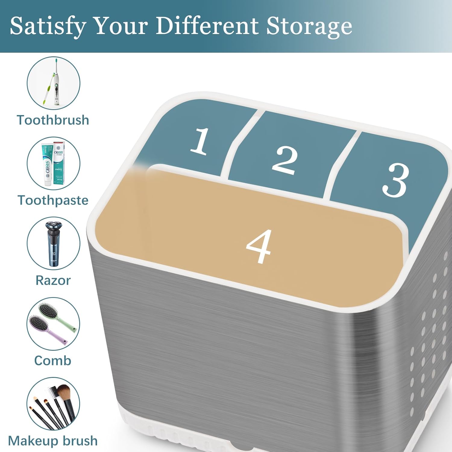 - DETACHABLE DESIGN: The toothbrush holders for bathrooms has a removable and compartmentalized design, with a total of 4 slots, it has enough capacity to store different kinds of bathroom storage, which greatly saves the storage space on the bathroom countertop. The removable design of the electric toothbrush holder is also easy for you to clean.