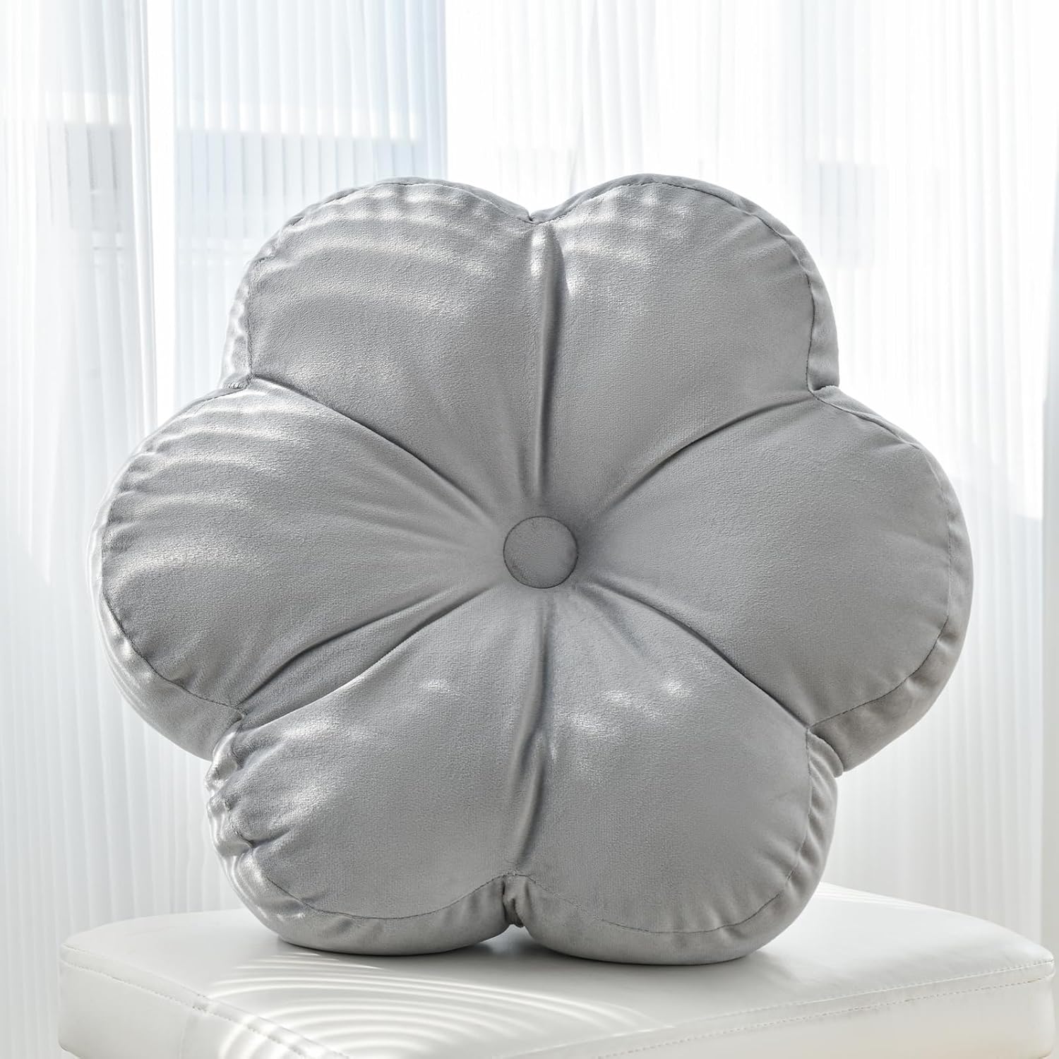 Xuyier Flower Pillow, Flower Shaped Pillow with Velvet for Couch Bed Chair Sofa, Home Decor Floor Seating Cushion Cute Throw Pillows for Living Room Bedroom (15 Inches, Light Gray)