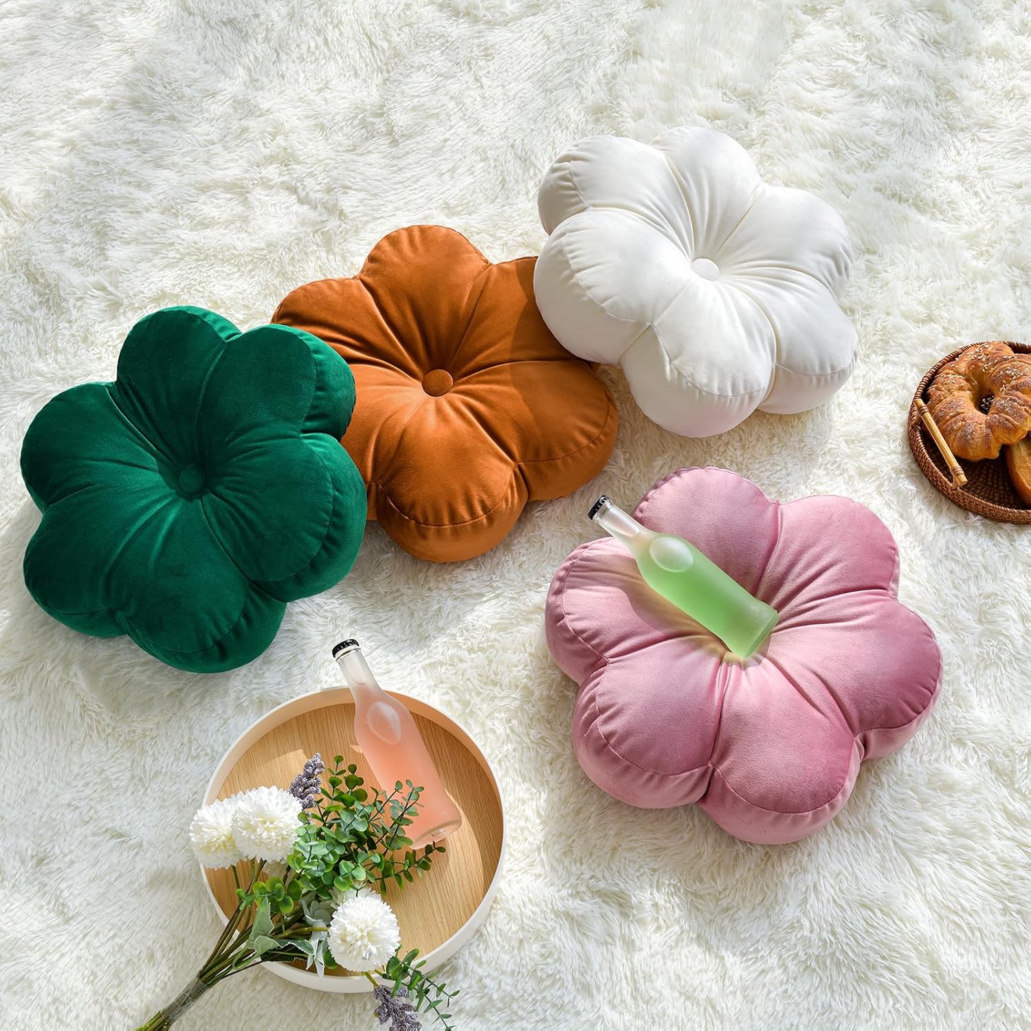 • Quality Material: The 15 inches flower pillow decorative floor cushion is made of velvet fabric, fully filled with high-quality PP cotton, soft to the touch, full in shape and not easily deformed.