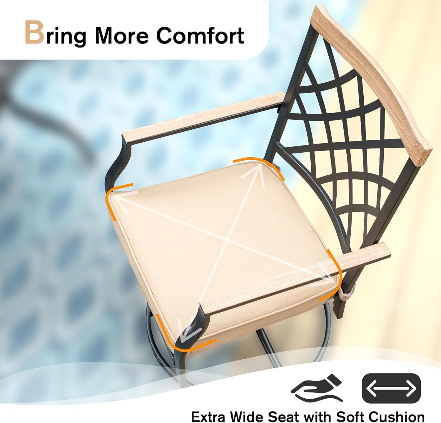 • All-Weather Modern Dining Set: This set combine with durable and stylish, made by heavy duty metal feature with e-coating powder for long last outdoor use. And the simple design will definite be a perfect decoration in your patio or lawn.