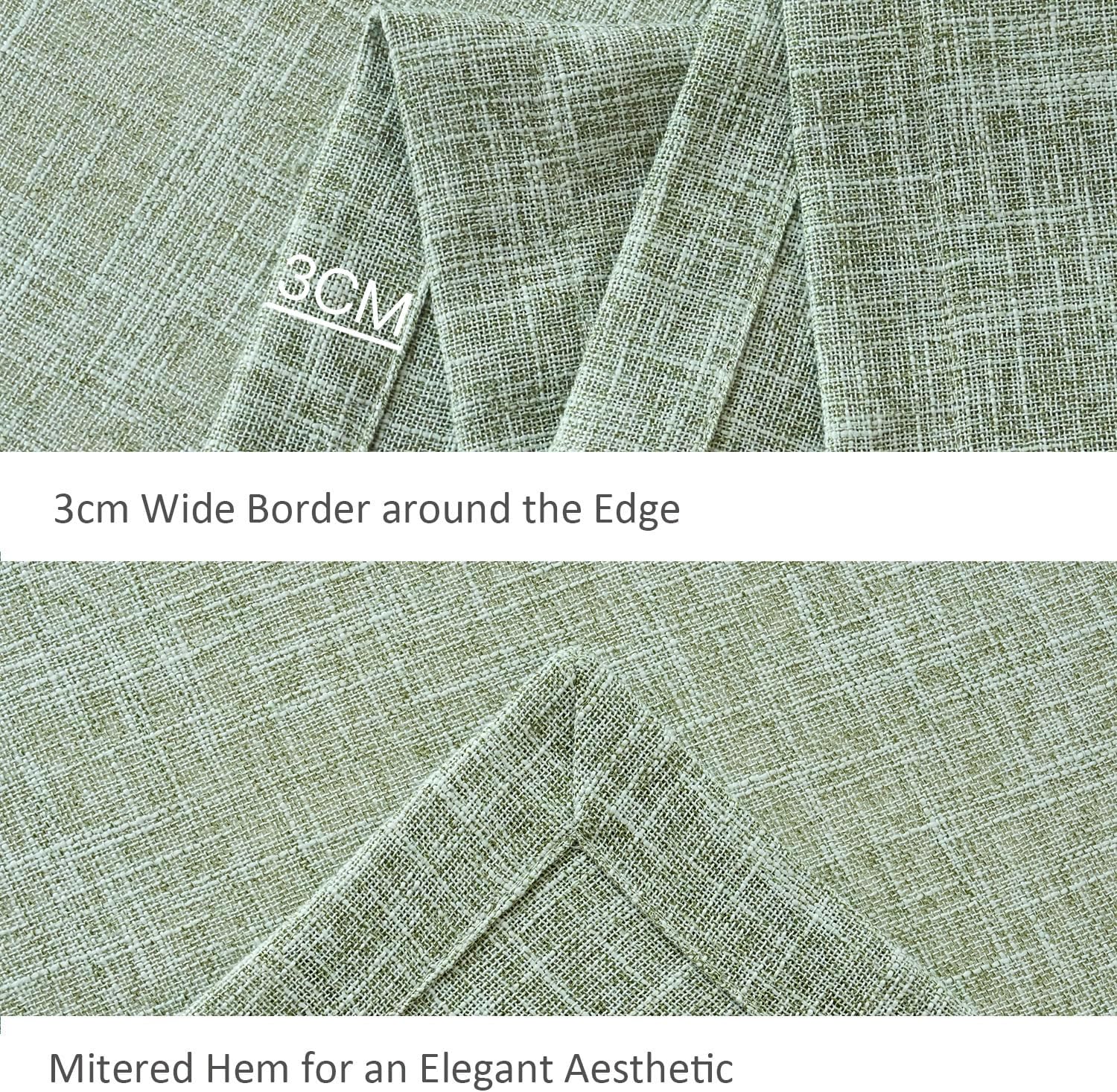 • Our table cloths are made of high quality polyester faux linen yarn, with slubby texture. It is more durable than real linen yet soft and supple; while protecting table surface, our tablecloth also adds a sense of understated luxury to your dining scene.