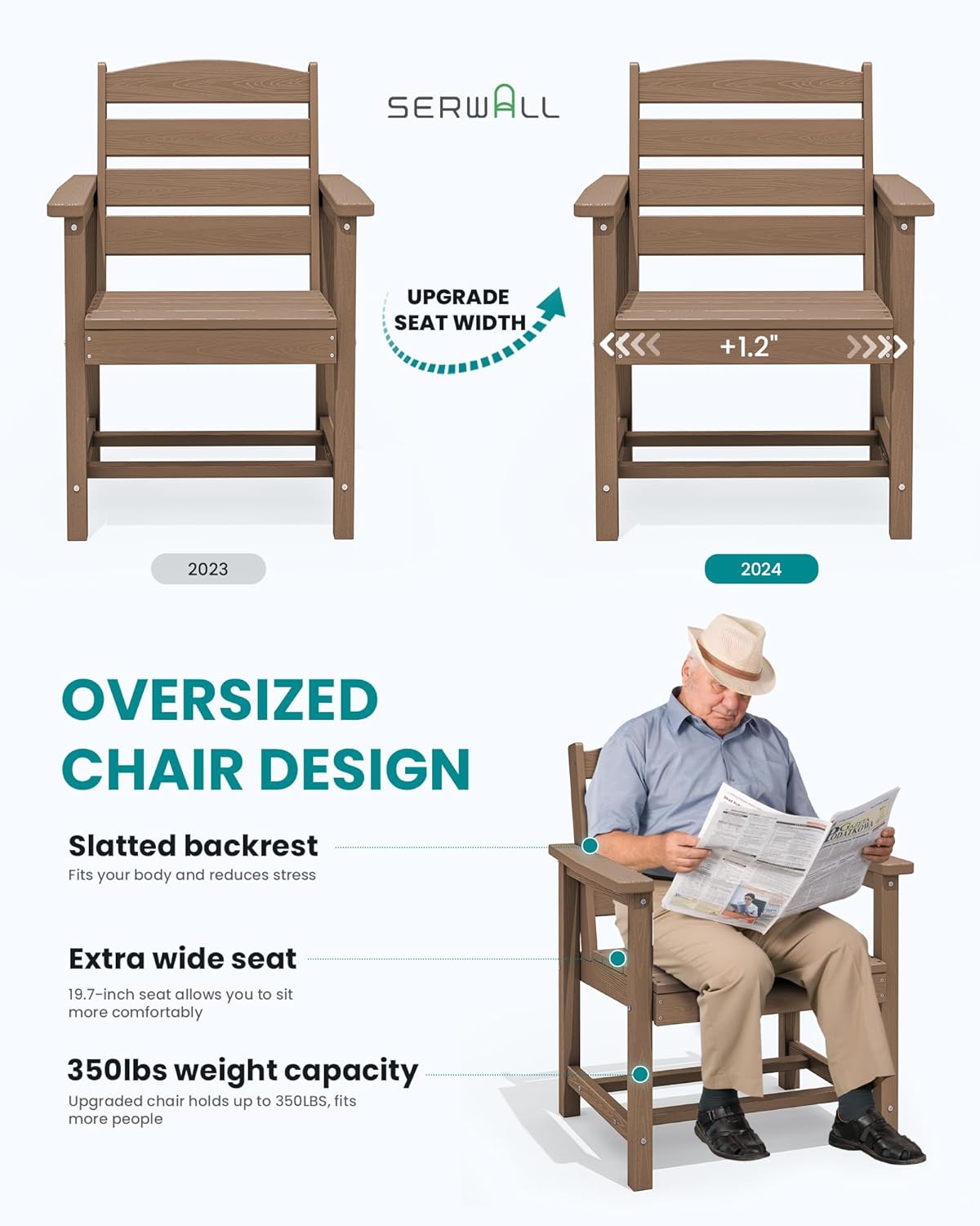 - 【Comfortable Dining Chairs】This patio dining chair is perfect for your family gathering. Featuring its armrest and slatted seat, adding extra comfort to the chairs. Each chair measures 23.4"D*23.6"W*33.6"H, its weight capacity is up to 330LBS.