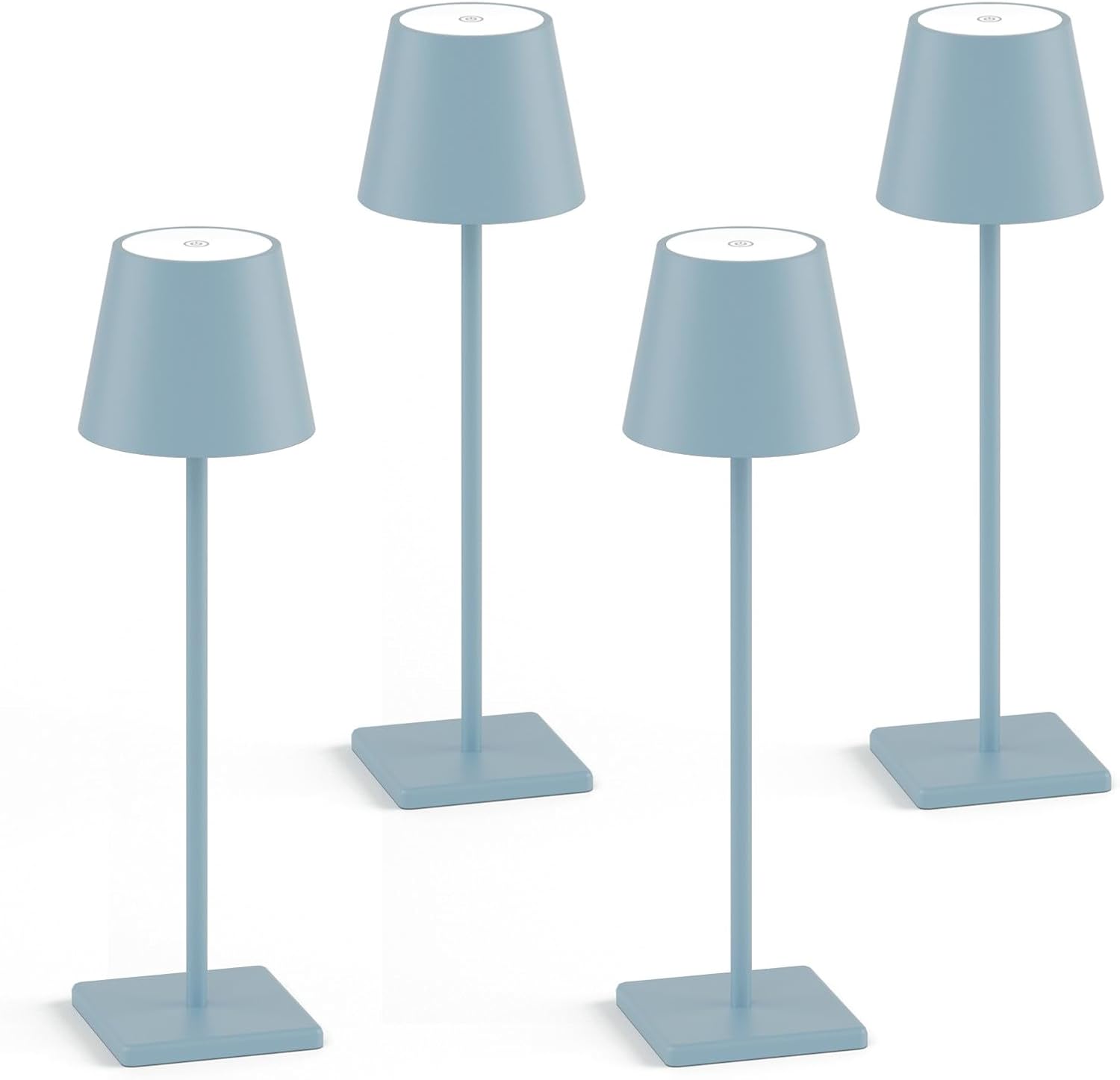 4 Packs Rechargeable LED Table Lamp,6000mAh Outdoor Cordless Desk Lamp Waterproof Portable, Stepless Dimmable Lamps for Restaurant/Bedroom/Outdoor (Blue)