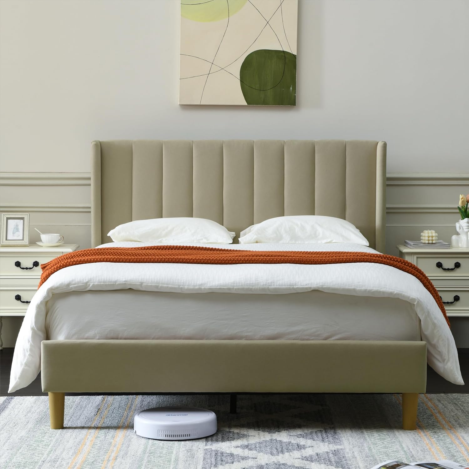 • [SIMPLE AND COZY HEADBOARD] Modern style stylish wingback design with a linen fabric covered headboard surface brings a chic vibe to your bedroom.
