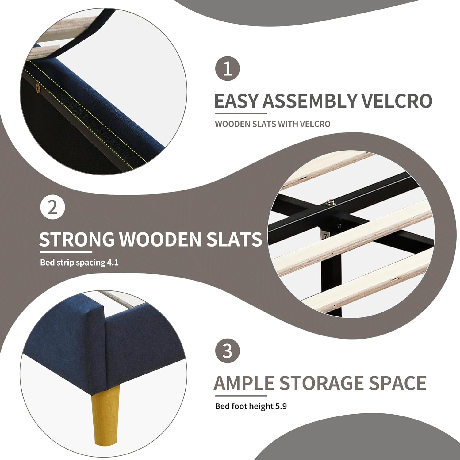 • [EASY INSTALLATION] All parts are labeled with corresponding instructions for easy installation, installation takes as fast as one hour, even for the first time (you need to open the zipper on the back of the headboard with black fabric to find most of the parts)