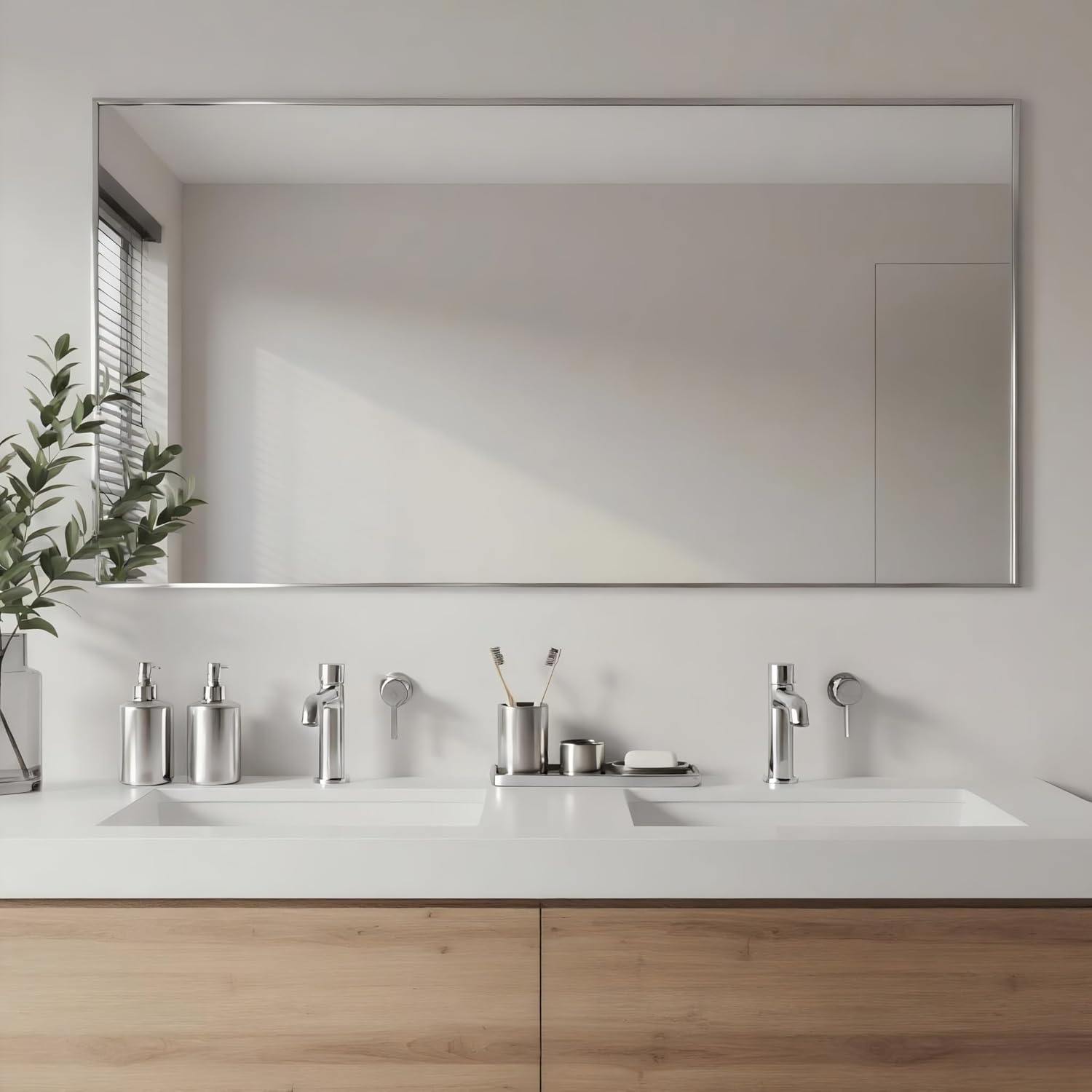 20x40 Inch Nickel Bathroom Mirror for Wall, Aluminum Frame Rectangle Rectangular Vanity Mirror, Modern Large for Bedroom, Living Room, Horizontal or Vertical
