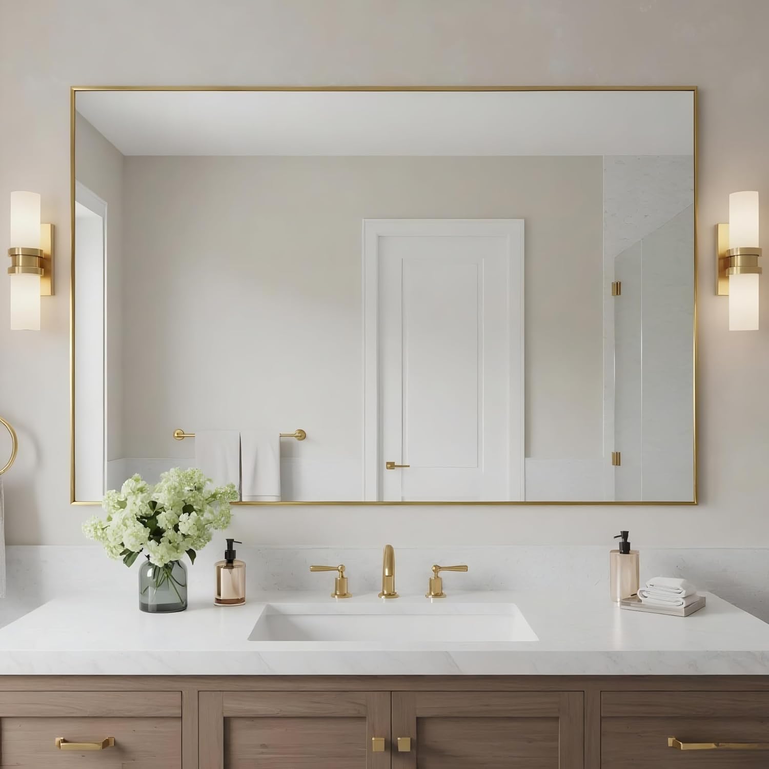 27x40 Inch Brass Bathroom Mirror for Wall, Aluminum Frame Rectangle Rectangular Vanity Mirror, Modern Large for Bedroom, Living Room, Horizontal or Vertical