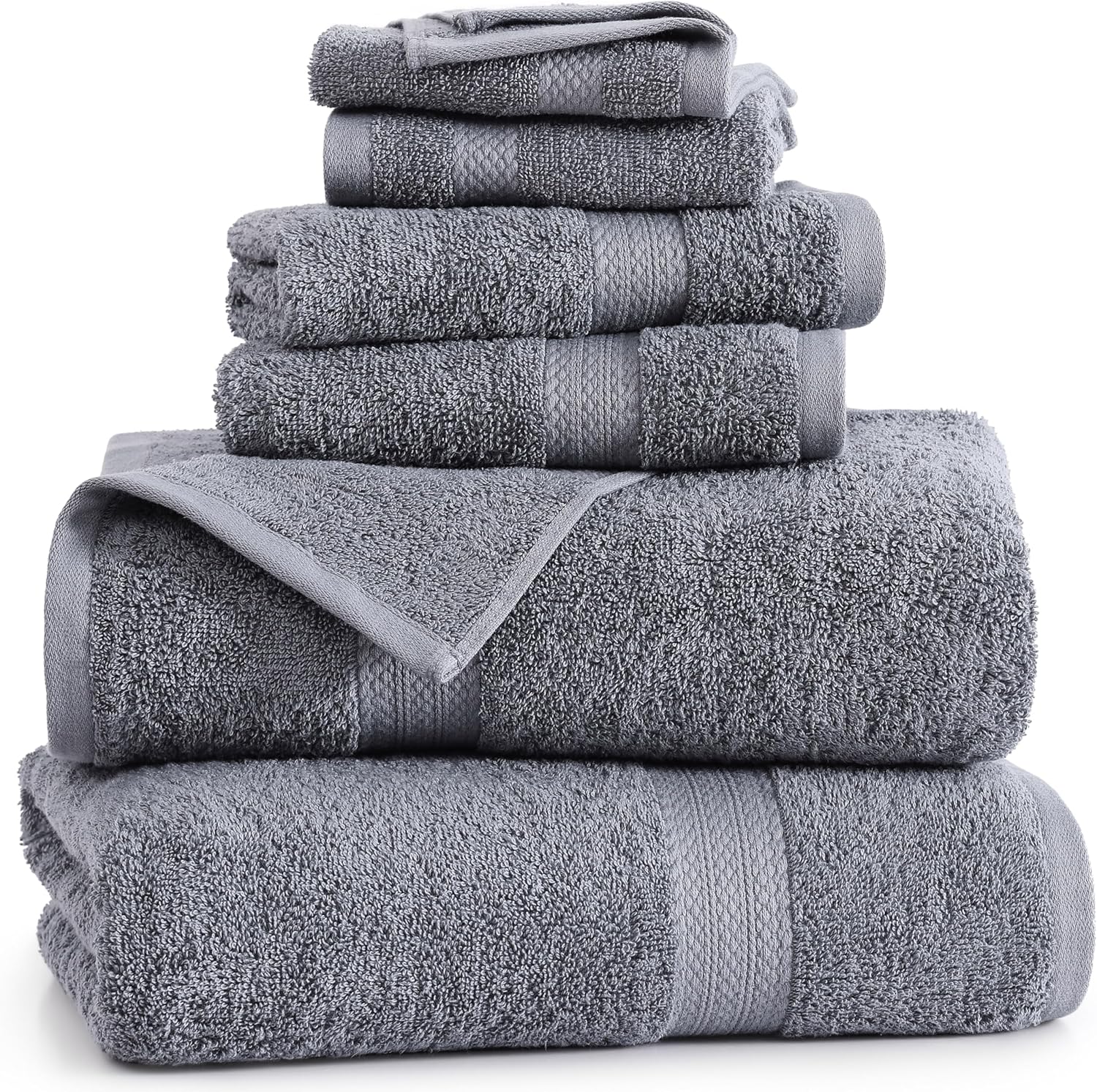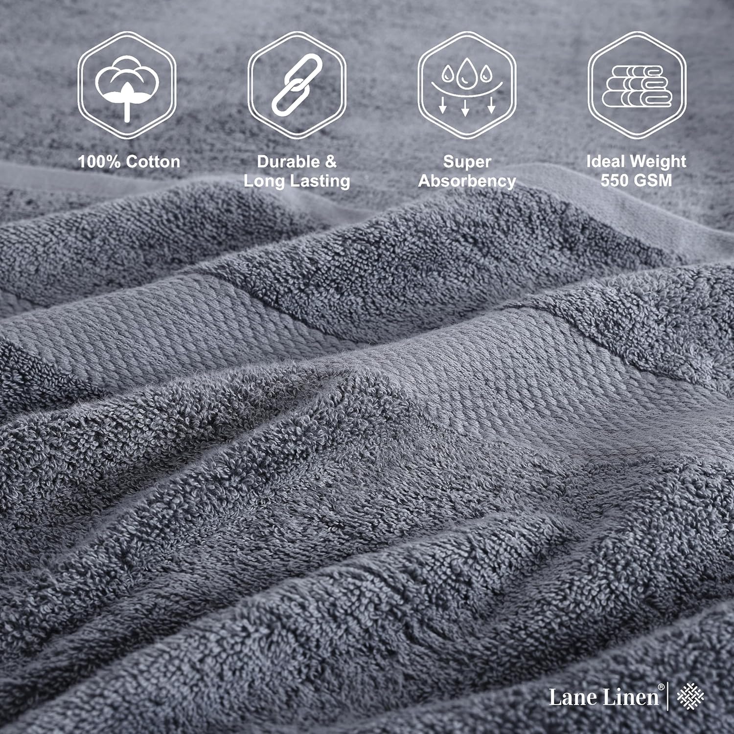 Lane Linen 100% Cotton Luxury Bathroom Towel Set - 6 Pcs - RingSpun, QuickDry, Very Soft & Highly Absorbent - 2 Large Bath Towels, 2 Washcloths, 2 Hand Towels - Pre Shrunk & Fade Resistant - Cool Grey
