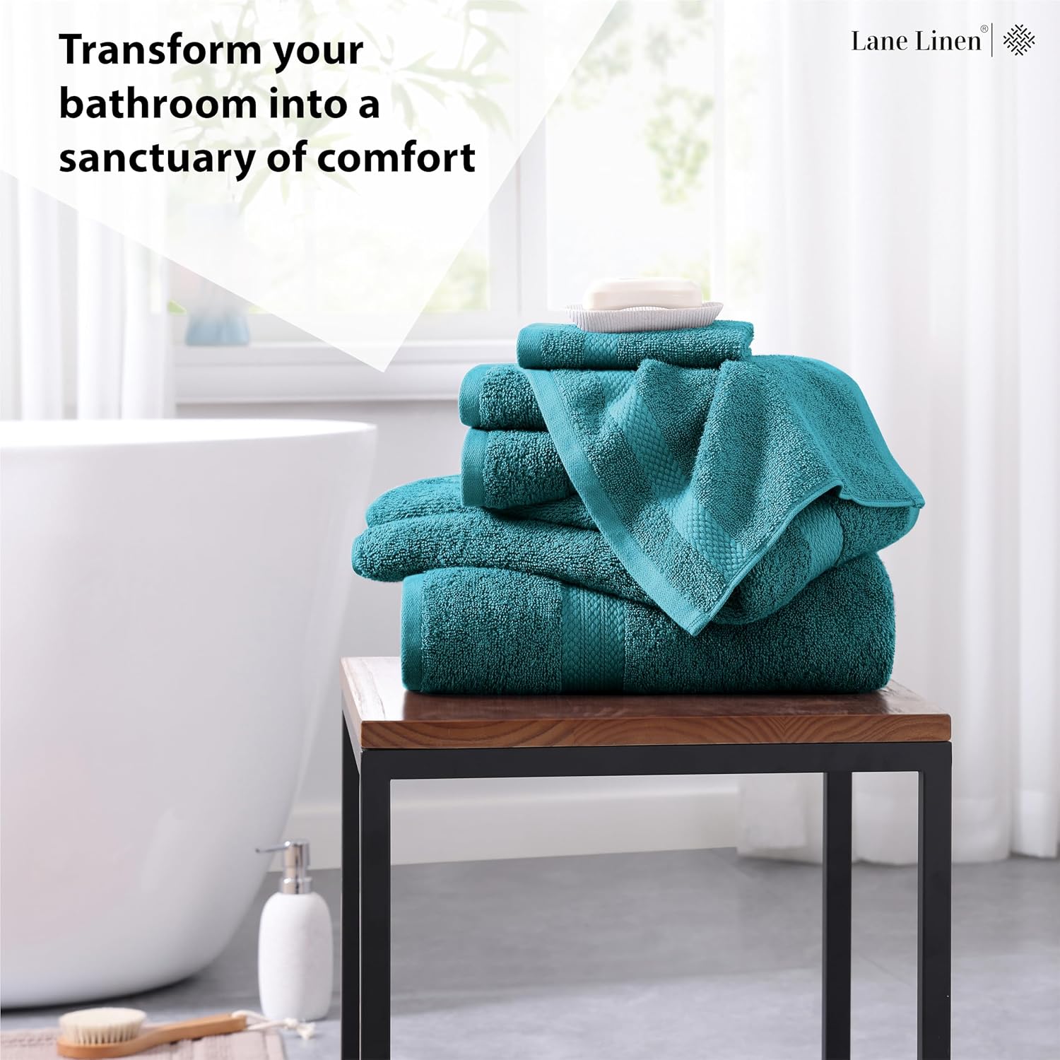 LANE LINEN 100% Cotton 6 Piece Bath Towel Set - Ring Spun, Quick Dry, Super Soft & Highly Absorbent - 2 Bath, 2 Washcloths, 2 Bathroom Hand Towels - Hotel Quality Luxury Bathroom Towel Set - Sea Port