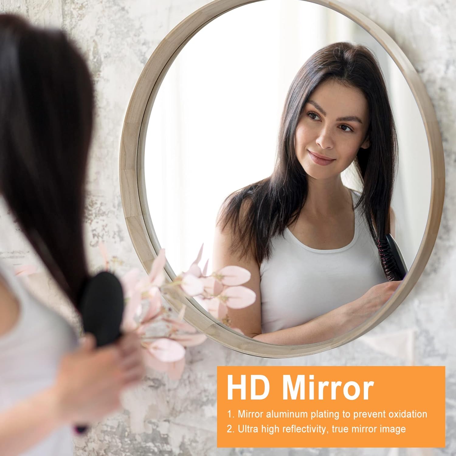 • Amazing Round Wood Mirror: The frame is made of solid wood, ensuring durability and beauty. Not easily deformed. The back of the mirror is treated with a high viscosity anti shattering film, which prevents the broken glass from splashing even if it is impacted by external forces. Safer and more protective in use.
