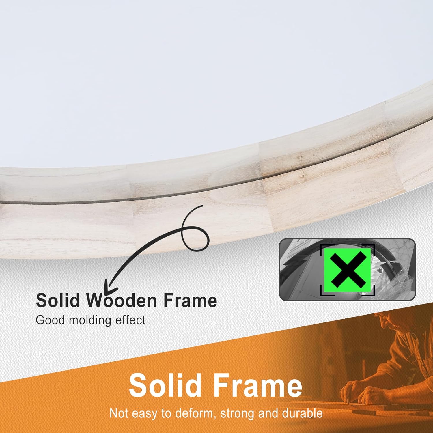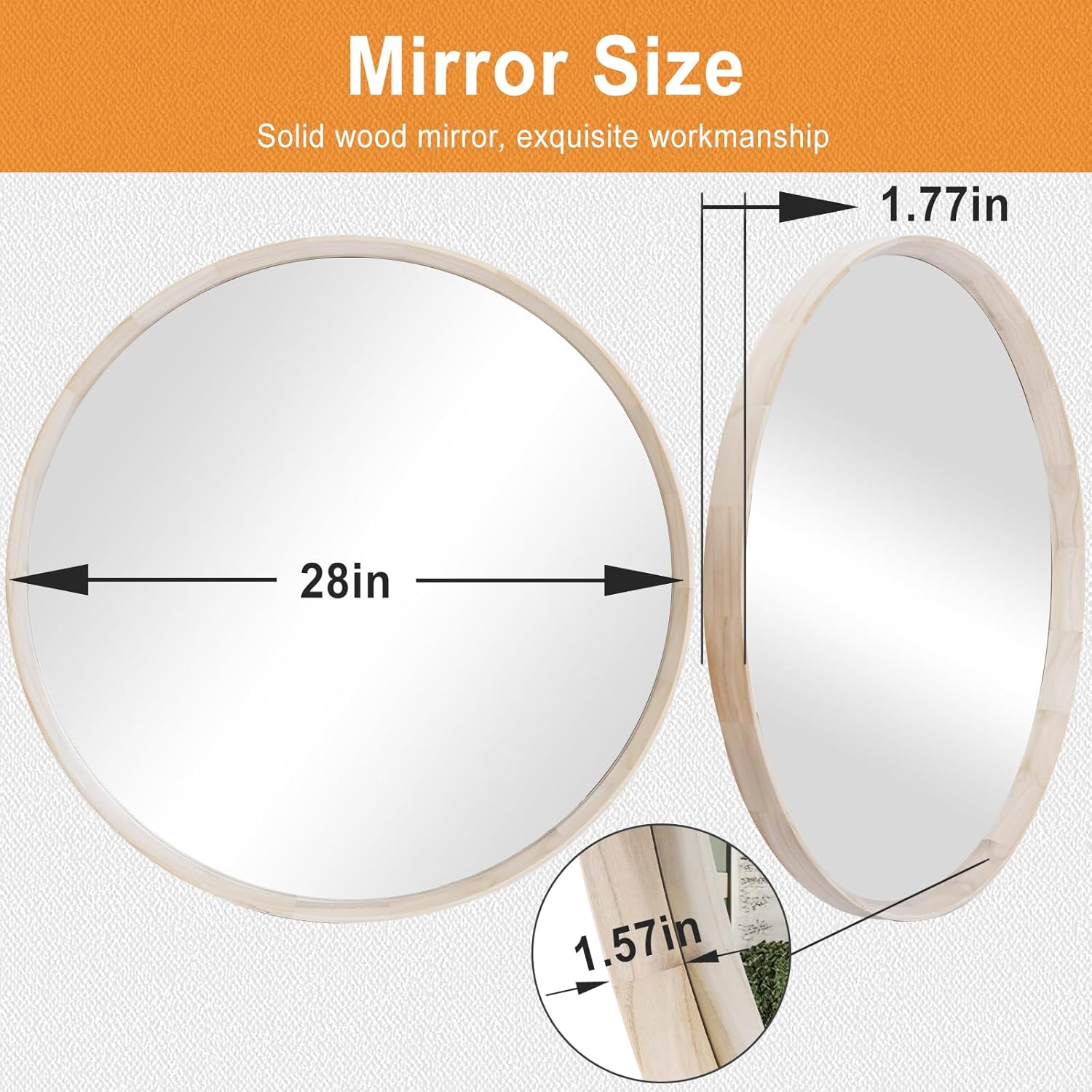 • Amazing Round Wood Mirror: The frame is made of solid wood, ensuring durability and beauty. Not easily deformed. The back of the mirror is treated with a high viscosity anti shattering film, which prevents the broken glass from splashing even if it is impacted by external forces. Safer and more protective in use.