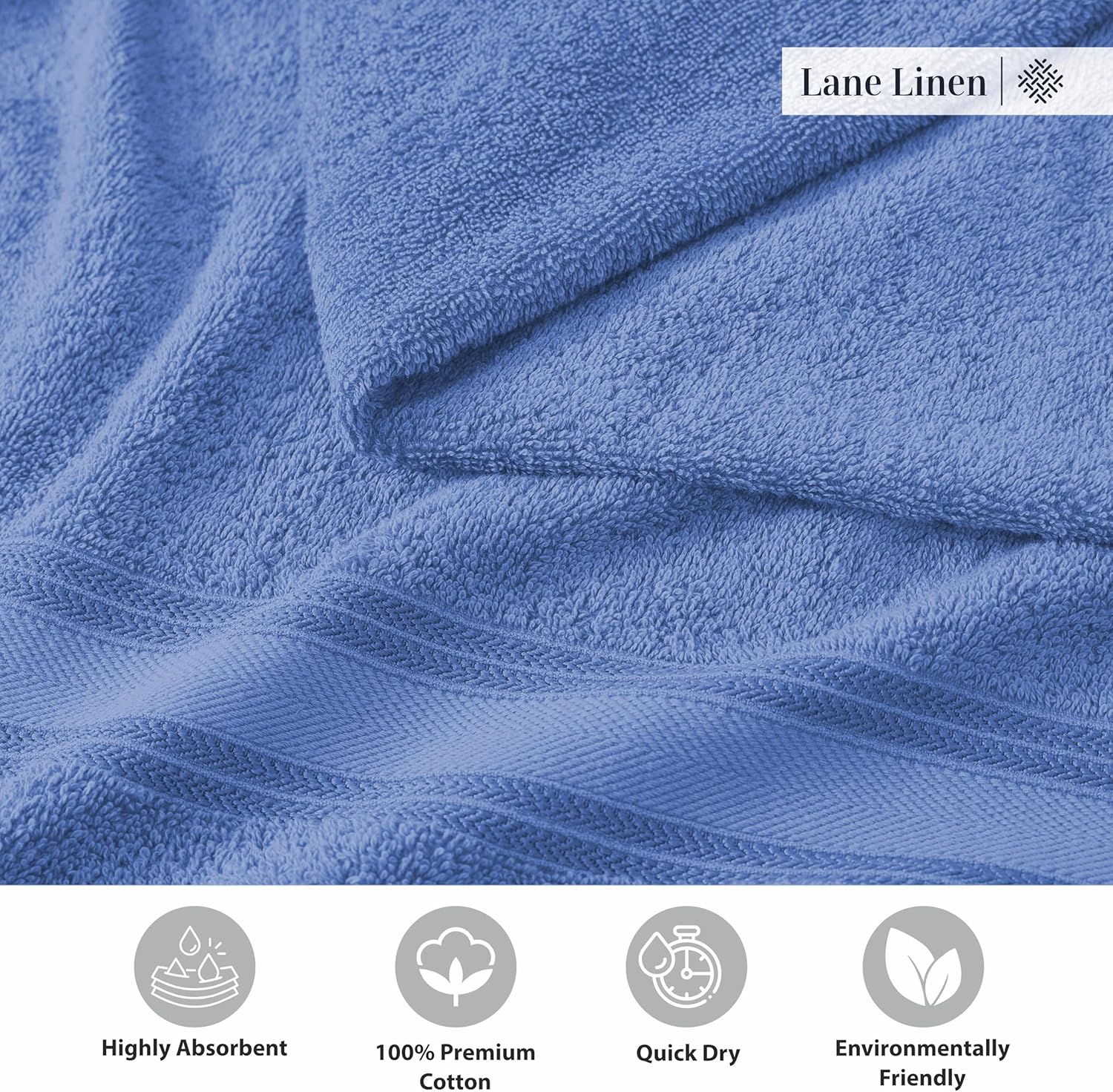 LANE LINEN 100% Cotton 4 Pack Bath Towels (30"x60") - Zero Twist, Mercerized Cotton Bathroom Towels Set - Quick Dry, Soft & Absorbent Large Bath Towels - Machine Wash in Cold Water - Cerulean Blue