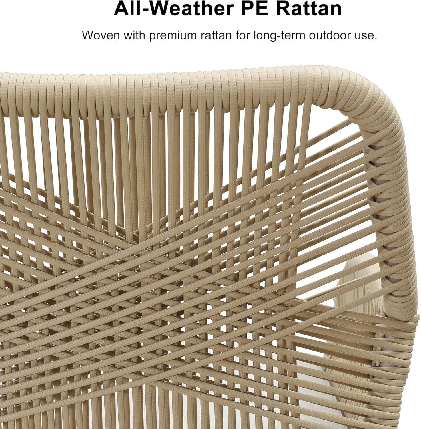 • PE Rattan Backrest: The chairs are thoughtfully designed with a PE rattan backrest, providing both style and durability. This intricate weaving technique not only adds visual appeal but also ensures long-lasting performance.