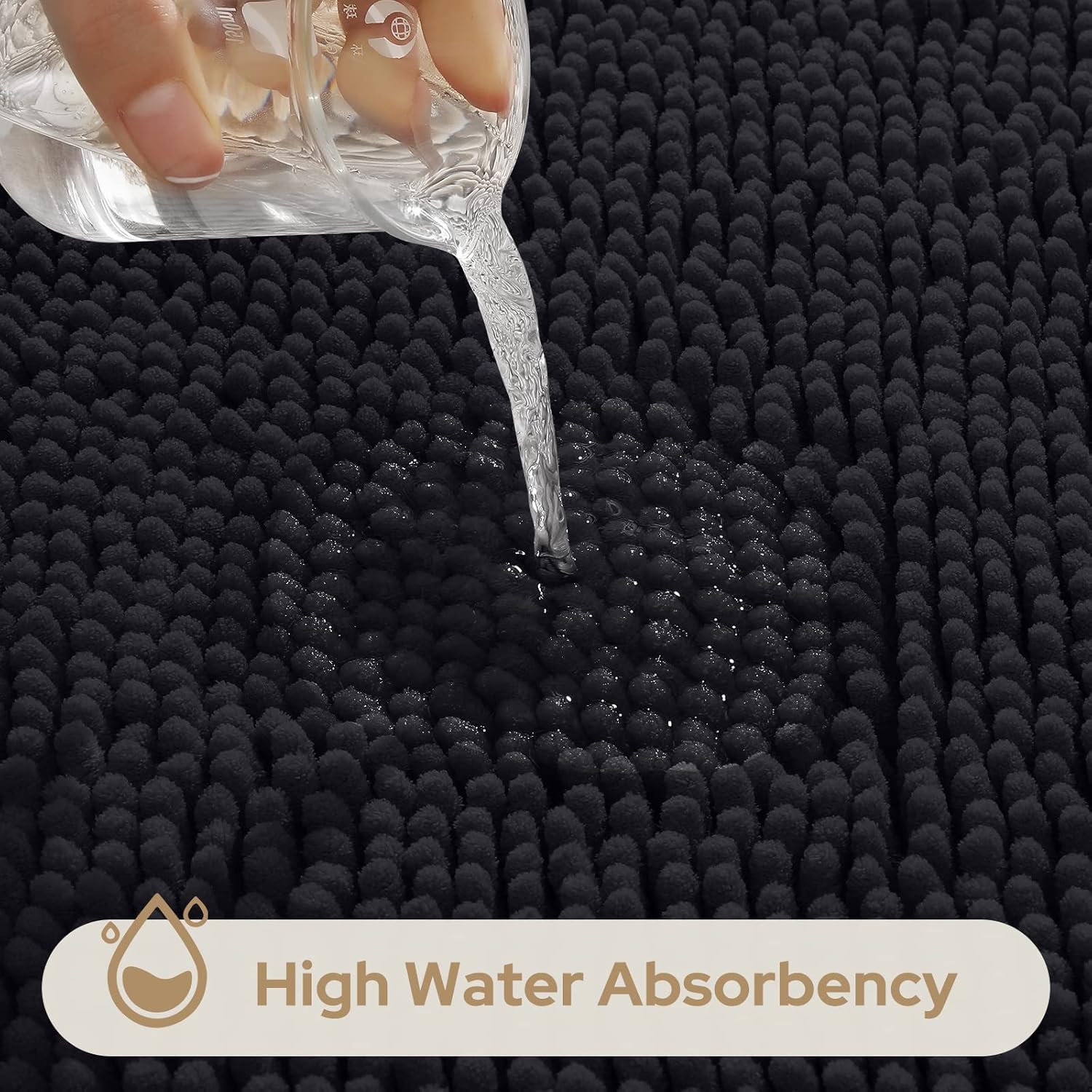 HOMEIDEAS 3 Pieces Bathroom Rugs, Extra Large Ultra Soft Non Slip Absorbent Chenille Toilet Bath Mat Set (Black,17"x24"+20"x48"+U Shape 20"x24")