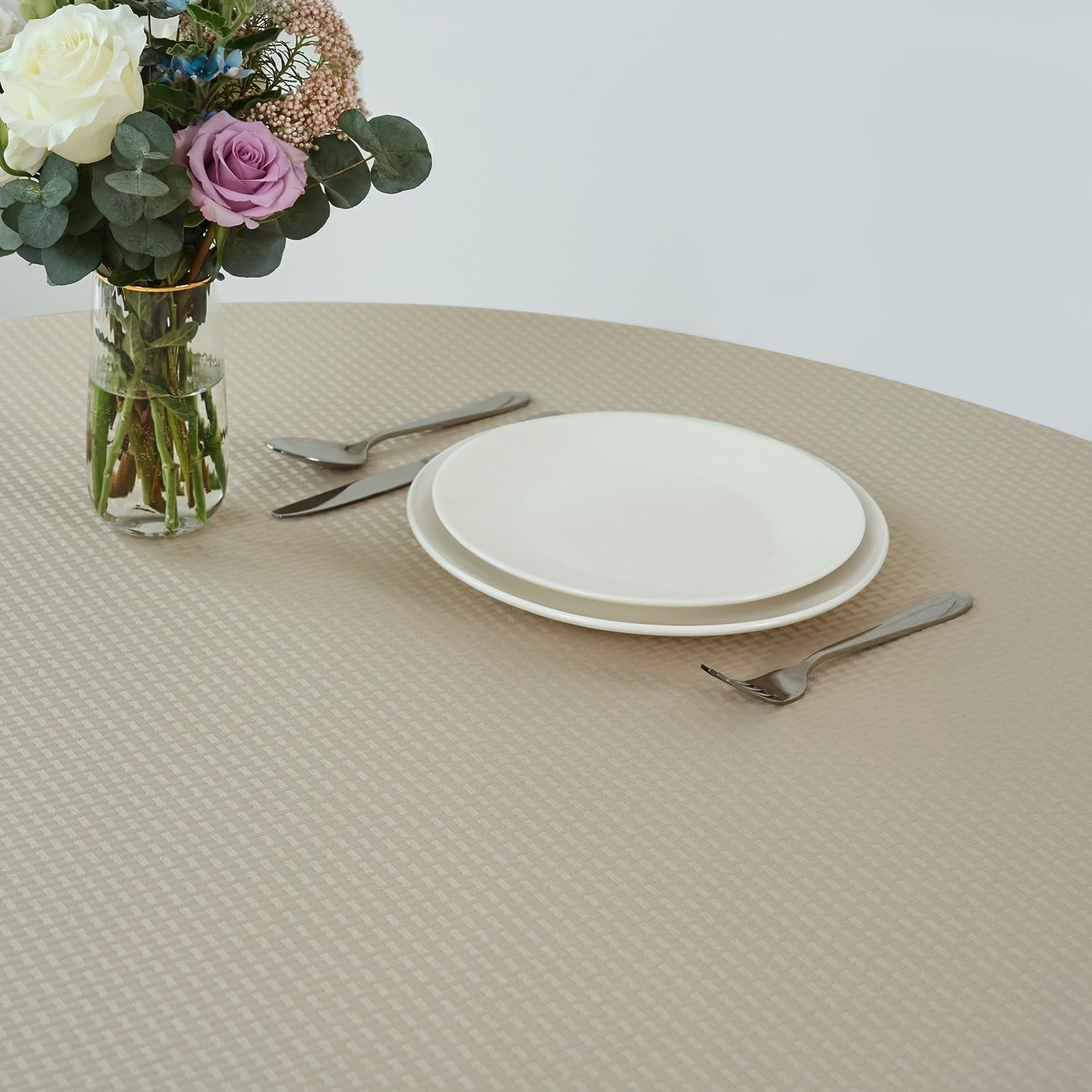 maxmill Round Weaved Texture Design Tablecloth Spill-Proof Wrinkle Free Soft Washable Table Cloth for Circular Table Cover, for Dining Room Buffet Banquet Parties Holiday Dinner, 90 Inch Natural