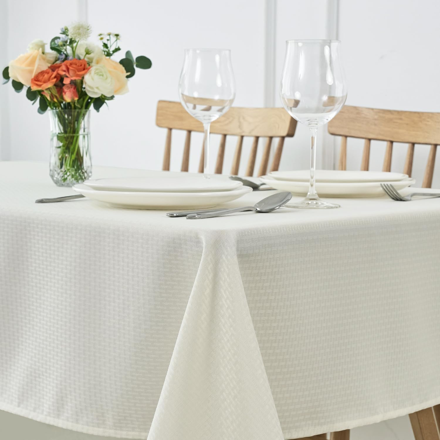 maxmill Rectangle Tablecloth Weaved Texture Design Water Resistant Wrinkle Free Spill-Proof, Soft Table Cloth for Dining Room Decoration, Banquet Parties Event Holiday Dinner, 52 x 84 Inch Ivory