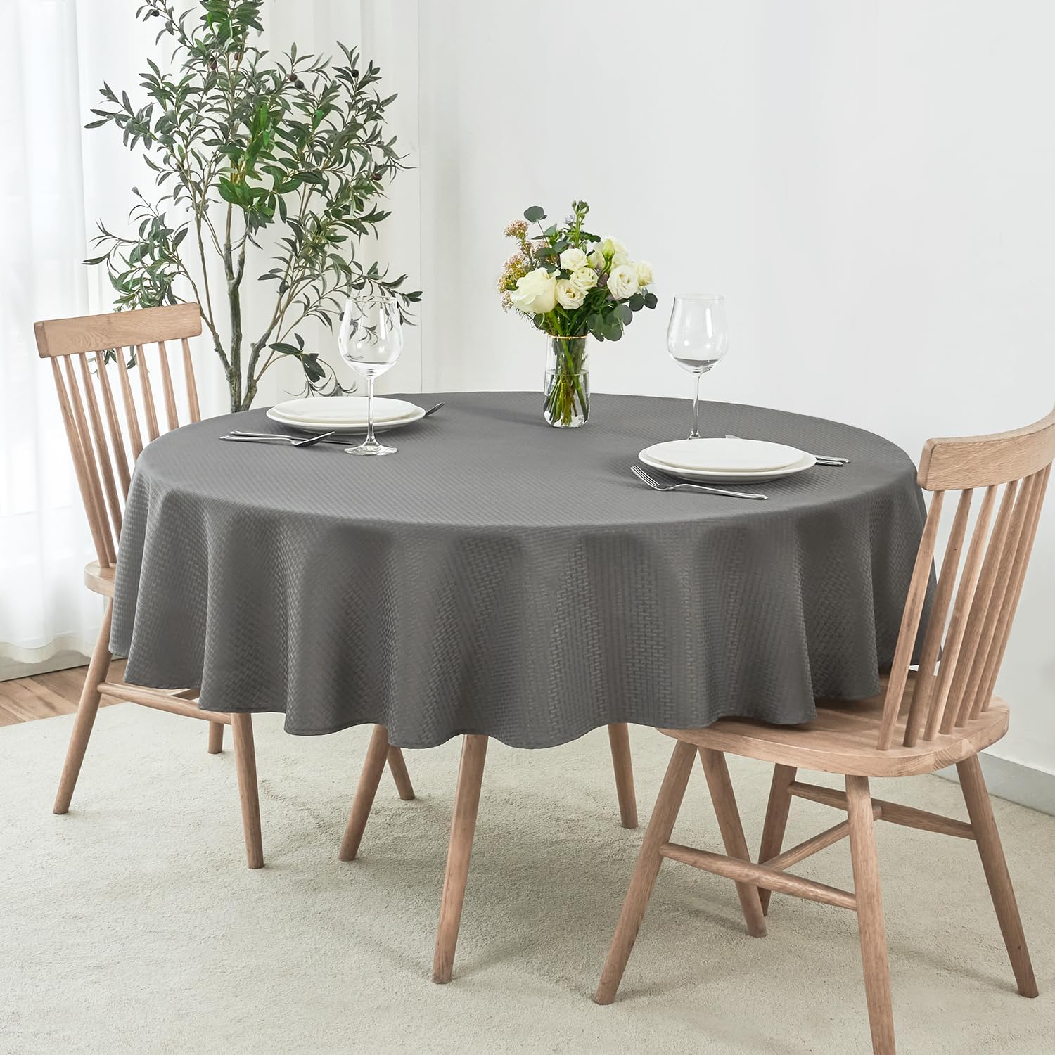 maxmill Round Weaved Texture Design Tablecloth Spill-Proof Wrinkle Free Soft Washable Table Cloth for Round Table Cover, for Dining Room Buffet Banquet Parties Holiday Dinner, 70 Inch Charcoal Gray