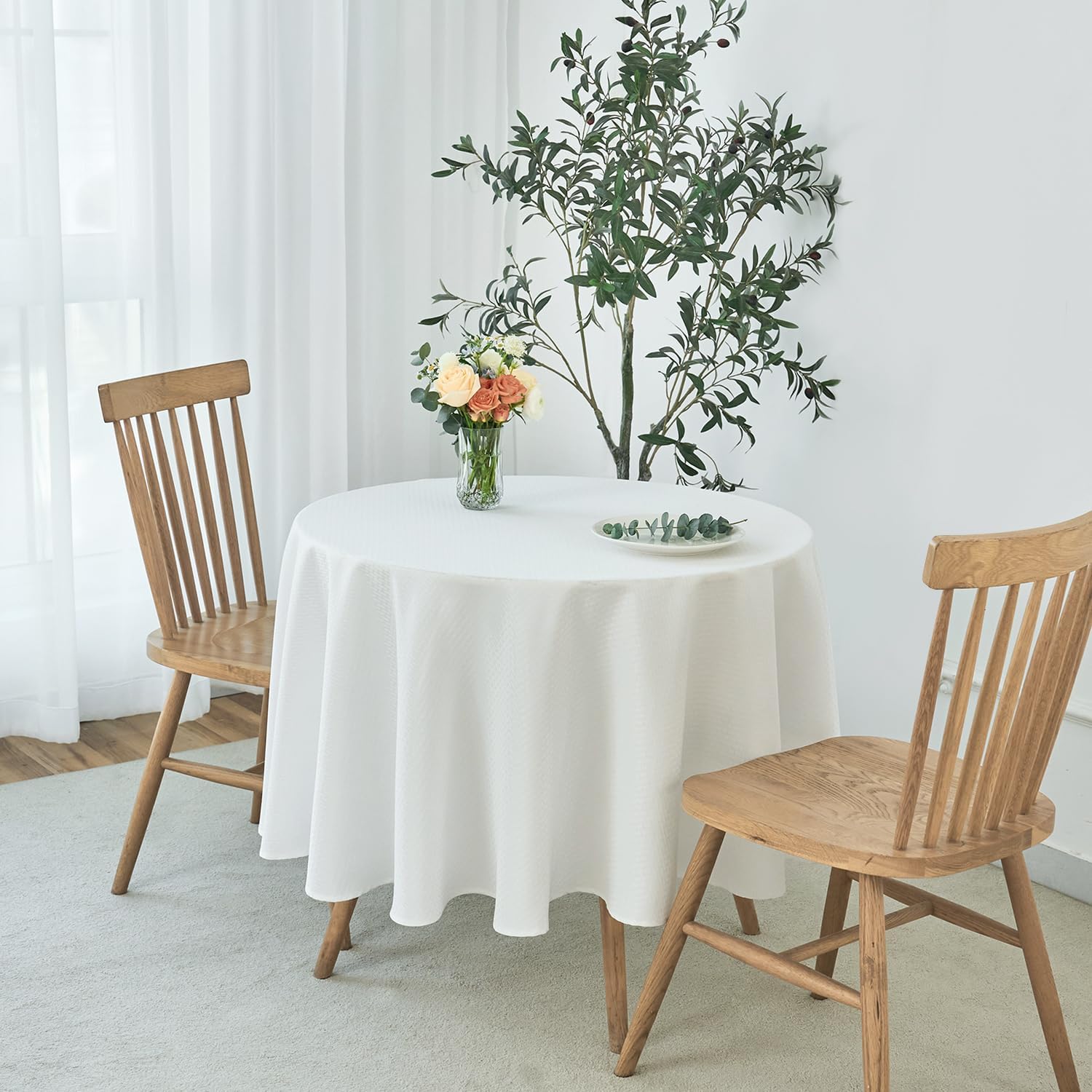 maxmill Round Weaved Texture Design Tablecloth Spill-Proof Wrinkle Free Soft Washable Table Cloth for Circular Table Cover, for Dining Room Buffet Banquet Parties Holiday Dinner, 90 Inch White