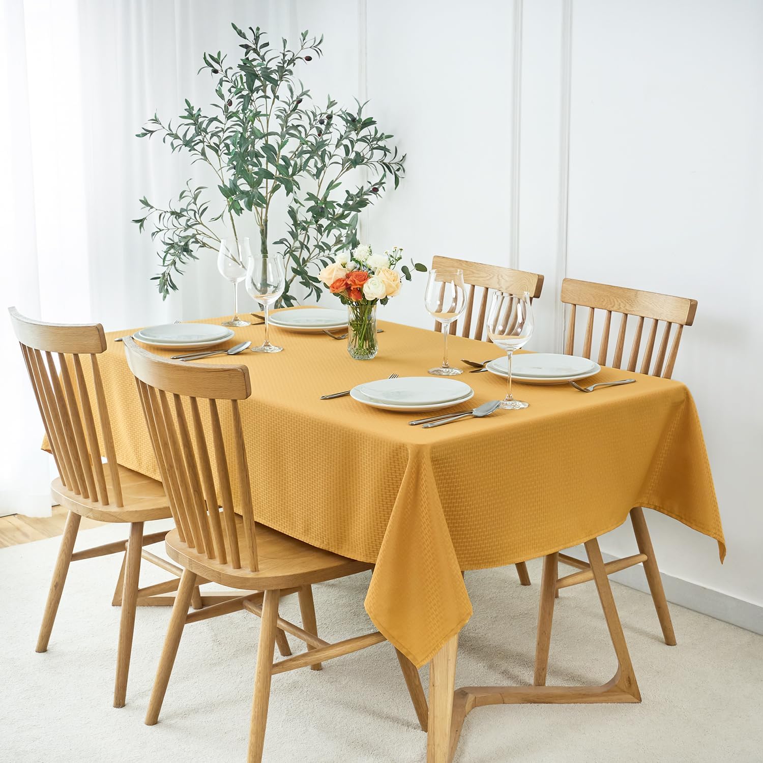 maxmill Weaved Texture Tablecloth Water Resistance Antiwrinkle Spillproof Soft Washable Table Cloth for Dining Room, Buffet Banquet Parties Holiday Dinner, Rectangular 70 x 108 Inch, Ochre Yellow