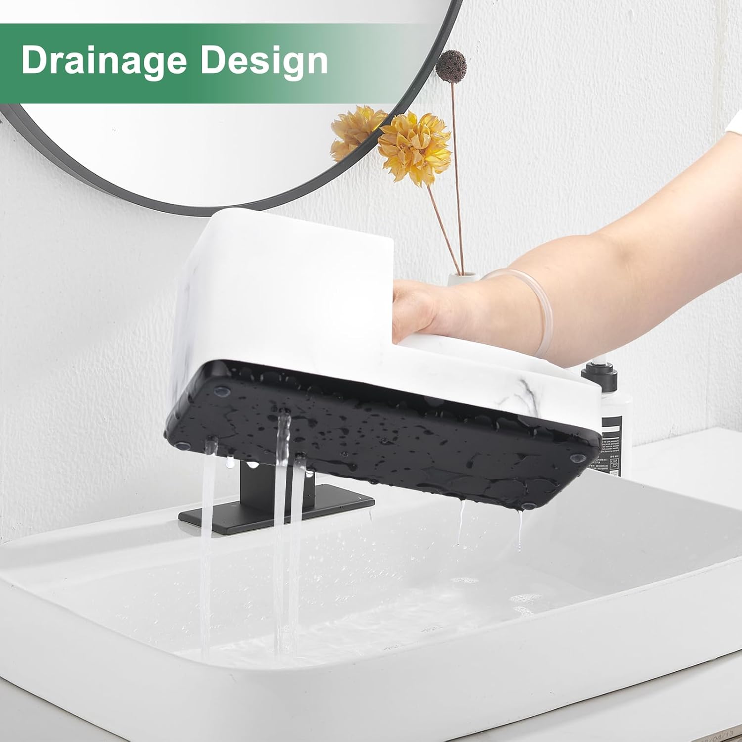 • NON-SLIP DRAINAGE DESIGN: The bottom of the bathroom sink organizer is equipped with 4 rubber pads and 3 drainage ports. The anti-slip strip can prevent the toothbrush holder from falling and scratching the table. Drainage holes on the bottom can drain at any time, avoiding moisture on the bottom of the toothbrush and toothpaste, keeping your bathroom dry and tidy.