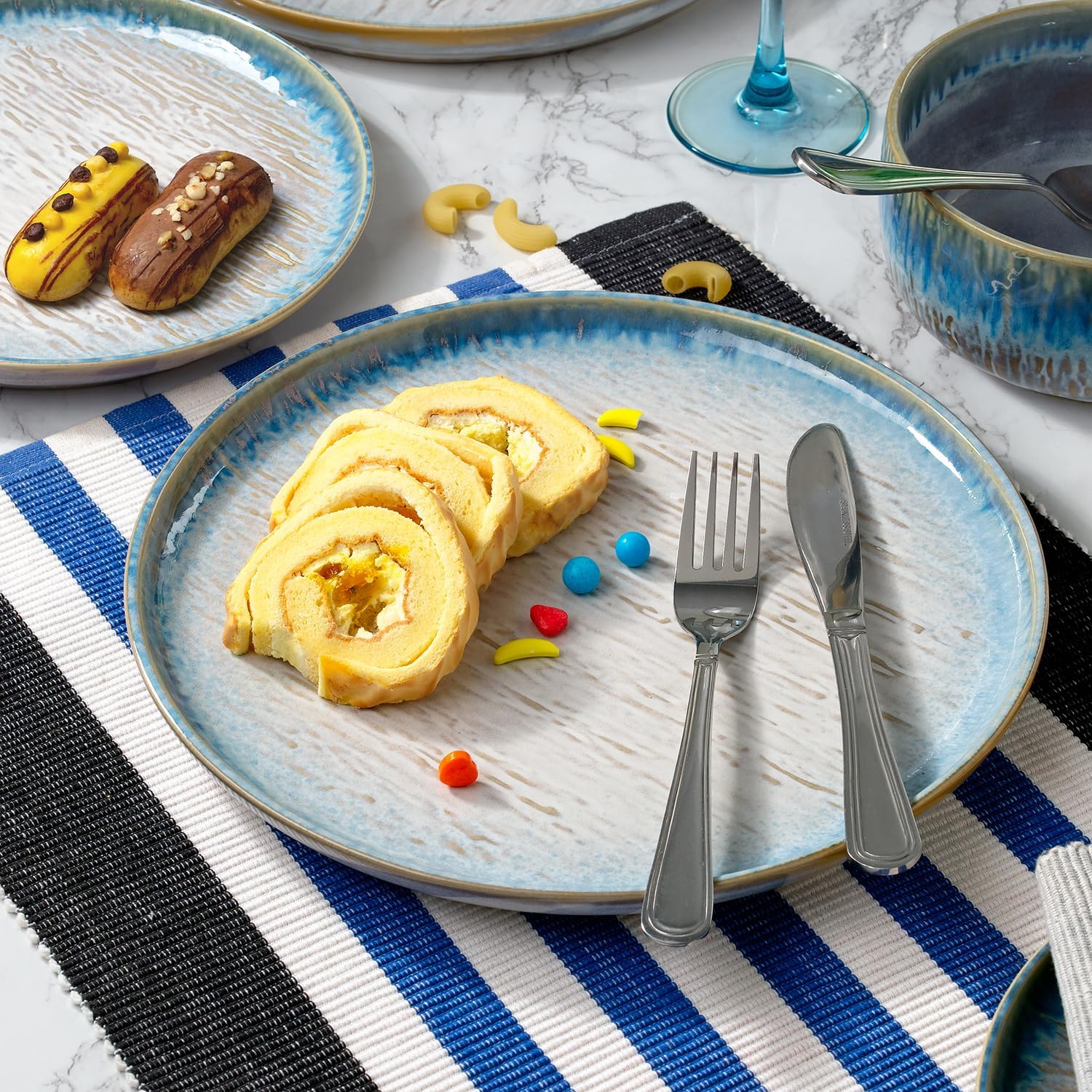 • HIGH QUALITY MATERIALS: Made of high-quality Grade A Stoneware with a reactive glaze finish. Our dinnerware set is built to last. Each piece undergoes rigorous quality control measures to make durability, resilience, and long-lasting beauty