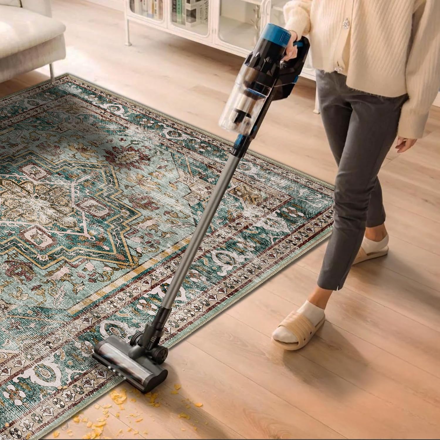 • Ultra-thin Safe: This ultra-thin Moroccan rug can be easily placed in entryways and under furniture, and won't get stuck on doors and become a tripping hazard. The sweeping robot can move freely to clean the carpet.This indoor rug can be used in many occasions, such as entry, living room, bedroom, dining room and more