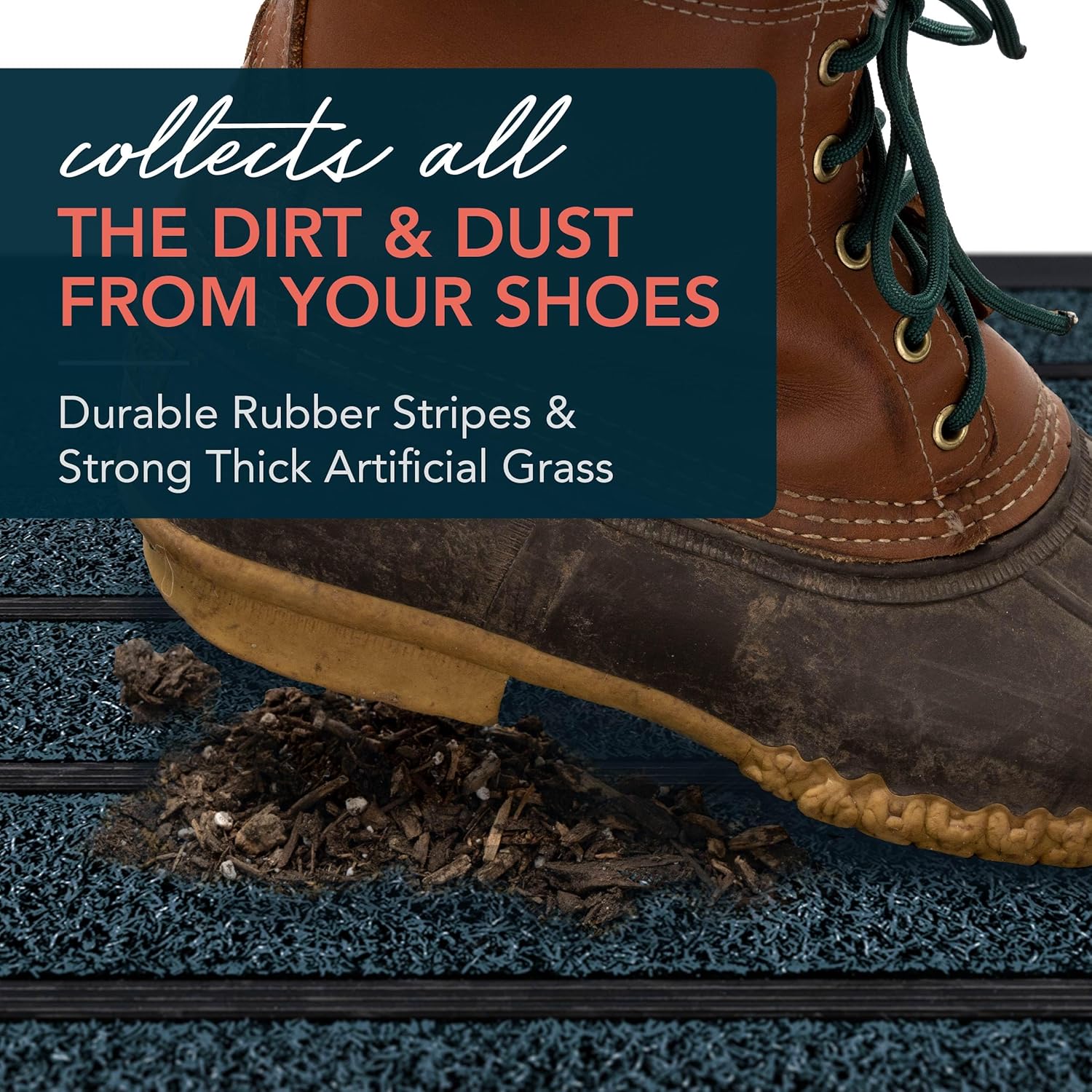 • Perfect Dirt Trapper: Our innovative design combines high quality artificial grass and durable rubber strips for an effective mud removing outdoor door mat. Outdoor front door mats outdoor will keep your doorstep clean and tidy.