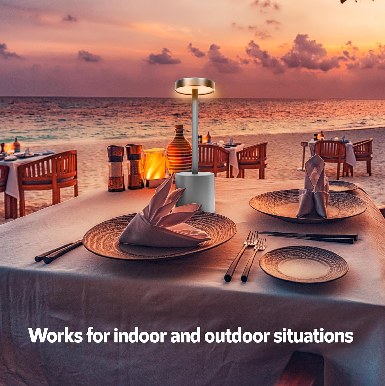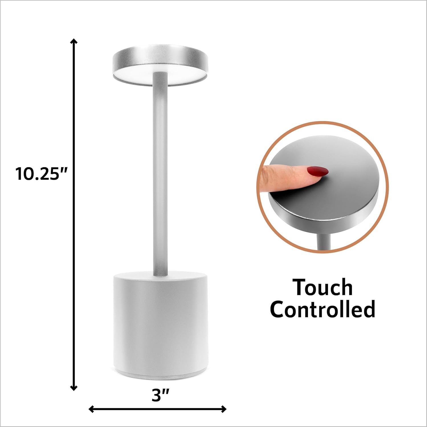 10 Pack - Silver Rechargeable Cordless Table Lamps, Portable LED Desk Lamps, Dimming 5000mAh Rechargeable Battery Powered LED Lighting for Restaurant,Bar, Bedroom, Outdoor, Party