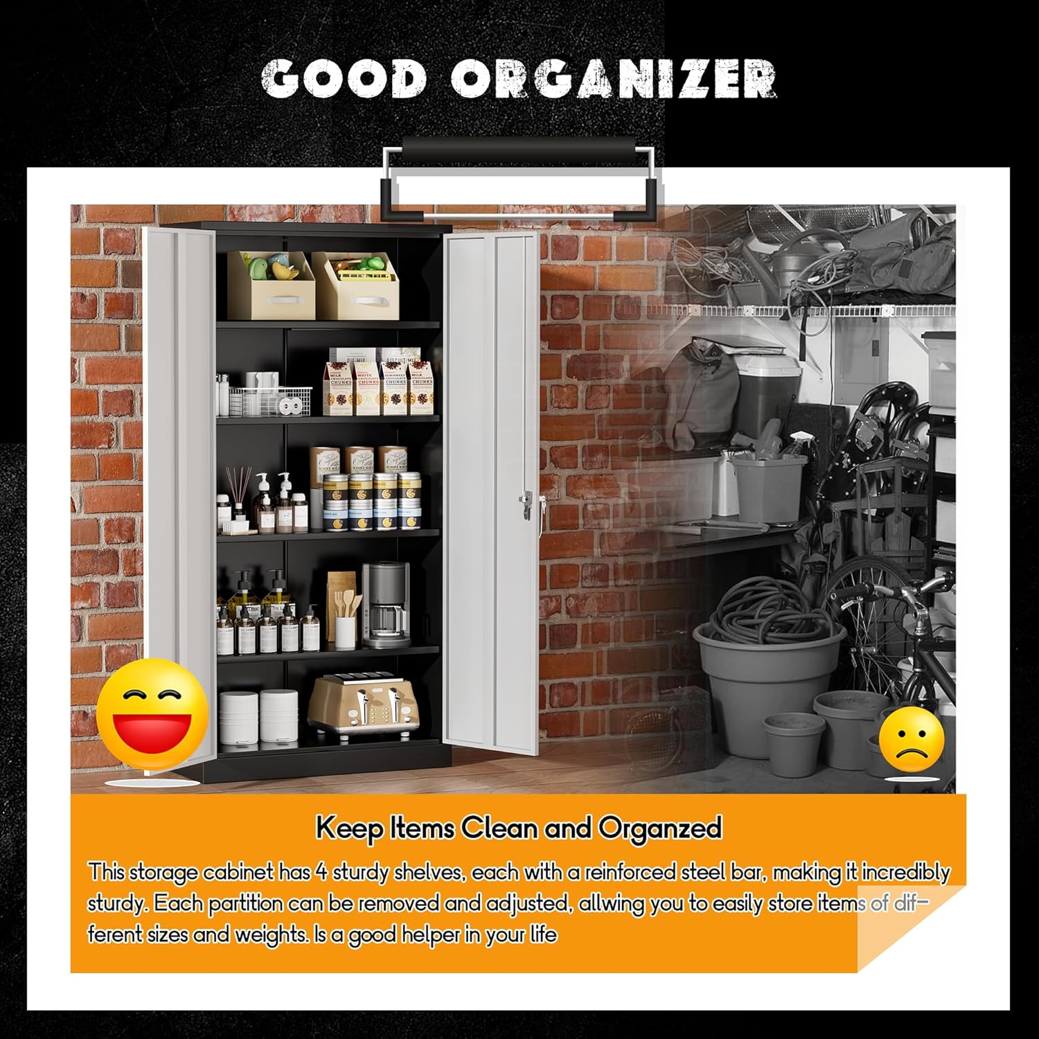 - 【Design & Durability】-Greenvelly Constructed from high-quality steel, this cabinet exudes durability. The black and grey finish adds a sleek touch to metal storage cabinet design, complementing any garage decor. The sturdy build inspires confidence, promising long-lasting performance even in demanding environments.