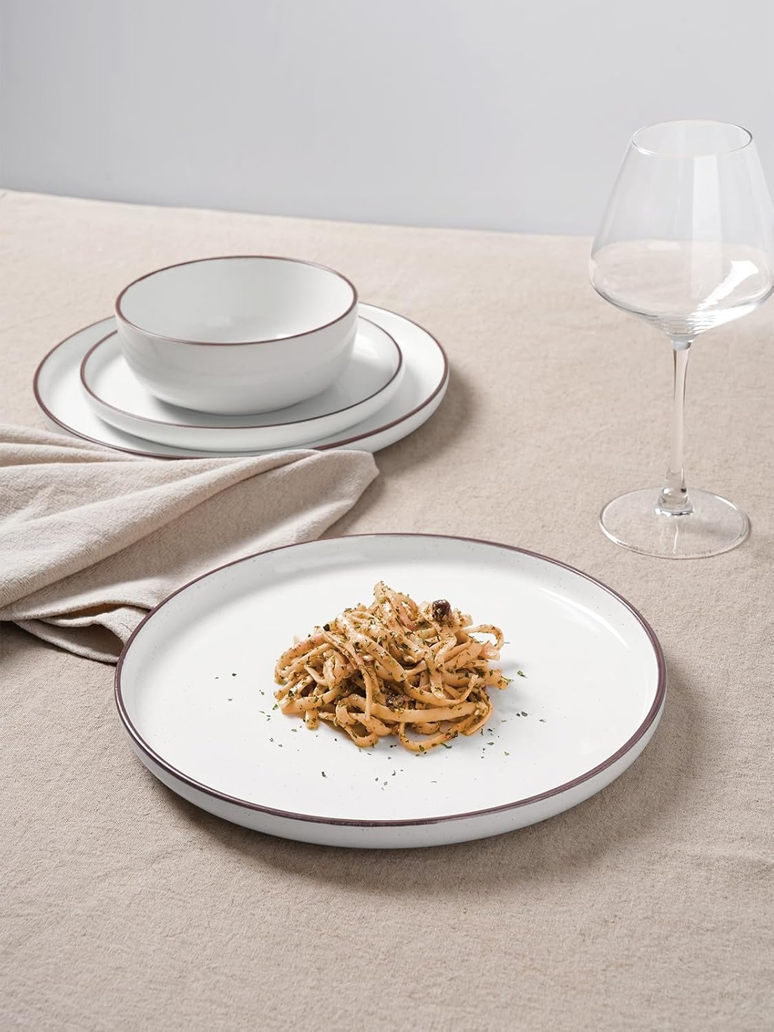 - 【BEST CHOICE】FAMIWARE Mercury dish set features modern minimalist design, neutral matte glaze, fun speckled pattern and hand-crafted edge to mesmerize people. It's a great choice for housewarmings, holidays, weddings, and fun celebrations.