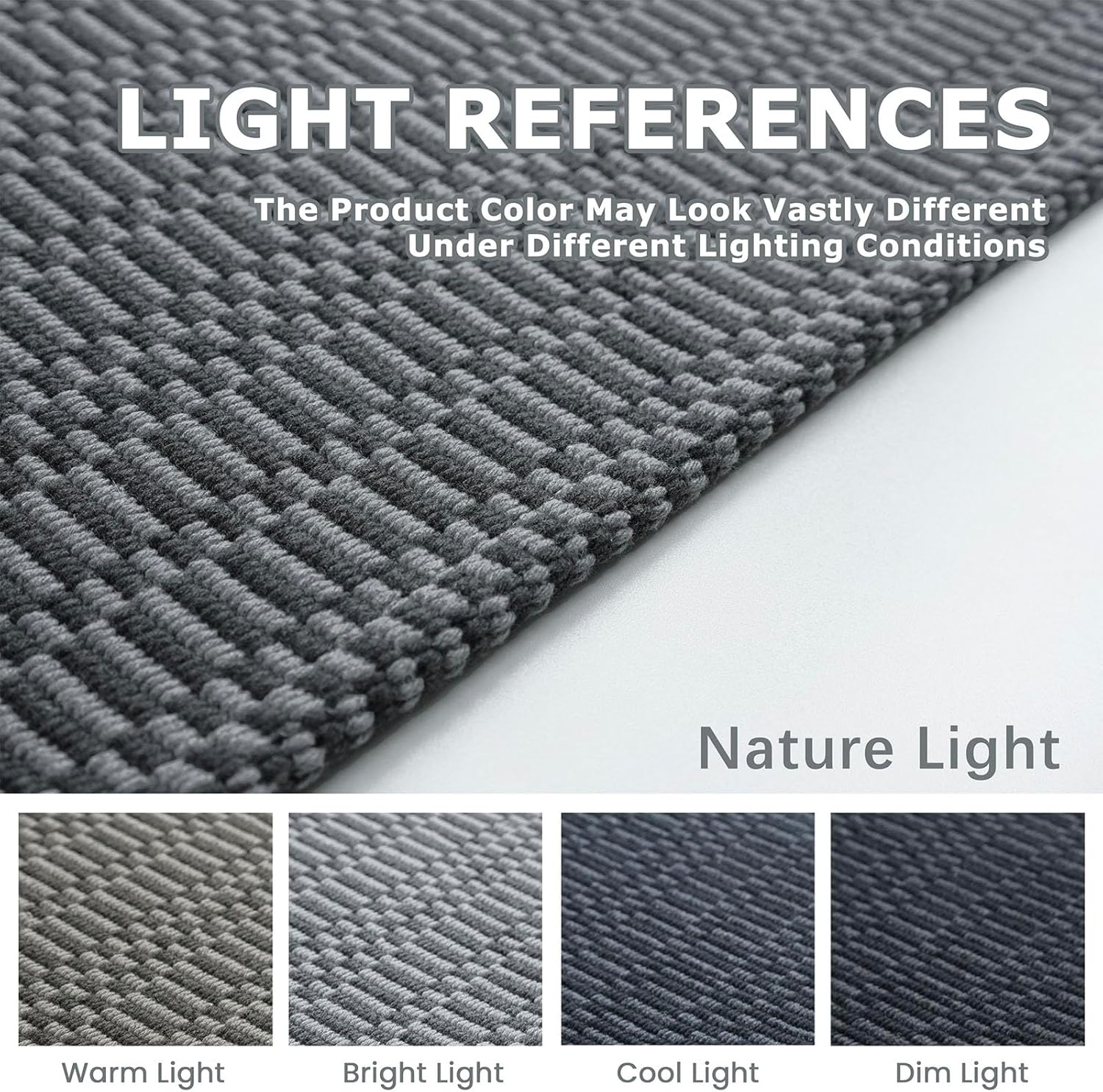 - Color Variation Notice: This rug blends charcoal grey and dark grey for a dark look that complements various decor styles. The image makes this look like a plain carpet, but it's actually a two-tone checkerboard design