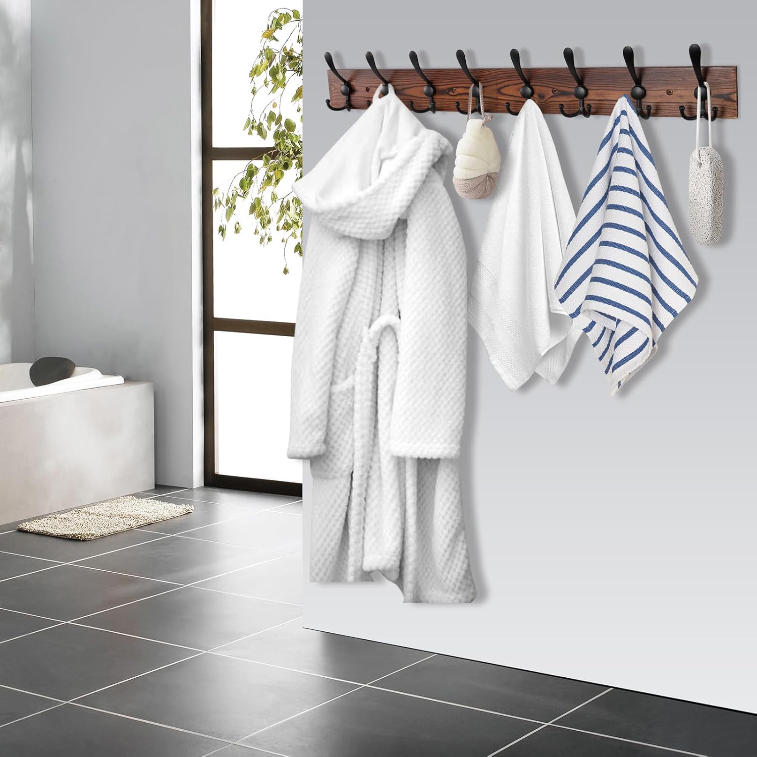32.2'' Large Coat Rack Wall Mount Coat Hooks Coat Hanger with 8 Metal Black Triple- Hooks Brown Pine Real Wood Plank Hat Rack for Wall Hooks for Hanging Coat Hat Jacket