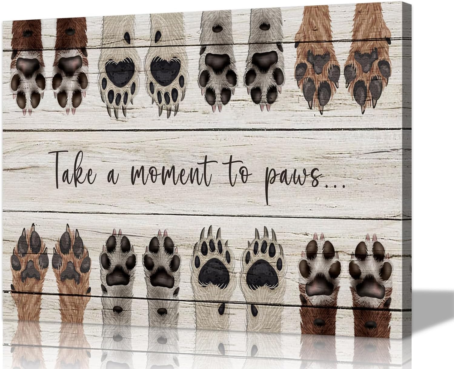 Dog Decor Animal Wall Art Take a Moment to Paws Decor Dog Poster Animal Posters Dog Painting Paw Print Decor Dog Canvas Art Puppy Paw Print Paws Print Wall Art for Living Room Decor (28''Hx40''W)