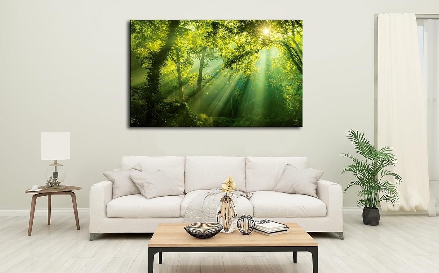 Green Forest Canvas Wall Art Dense Trees in the Sunshine Picture Print Landscape Painting Spring Nature Artwork Decor for Living Room Bedroom Office Decoration - - 24”x36”