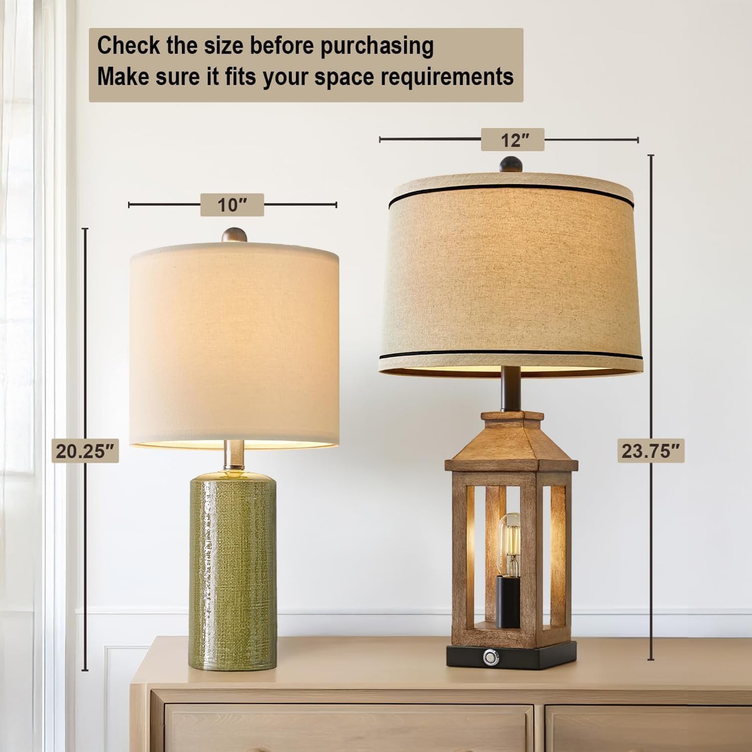 • Compact Size: Table lamp with a compact size, overall 10" D x 10" W x 20.25" H, an optimal choice of small room, such as nightstand, small table, end table, if placed it into a spacious room, please consider the size whether is acceptable before purchasing