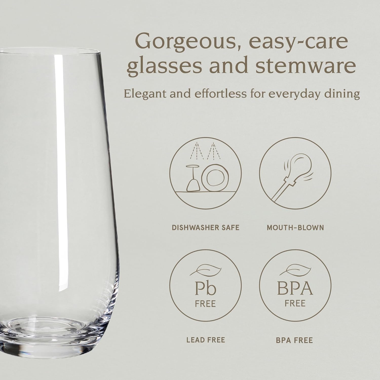 • TRADITIONAL GLASS: Truly delight in time at the table with our mouth-blown glassware. This set contains 4 perfectly-sized drinking glasses that create an open invitation to sit, engage, and enjoy.