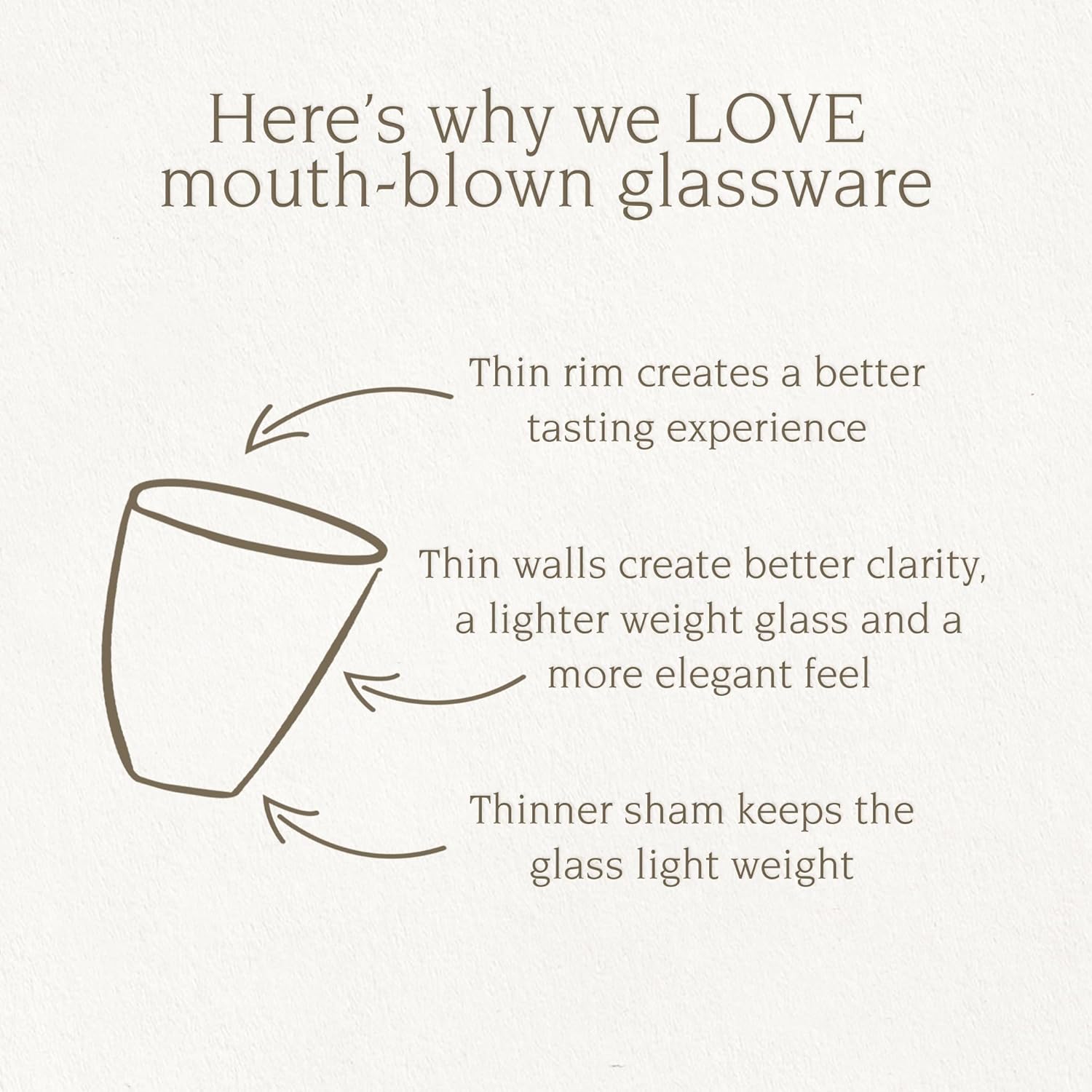 • HIGH-QUALITY: Our drinkware set is the real deal and stands out in the quality craftsmanship department. Each cup in this set is made from mouth-blown glass, perfect for wine, cocktails, soft drinks, and more.