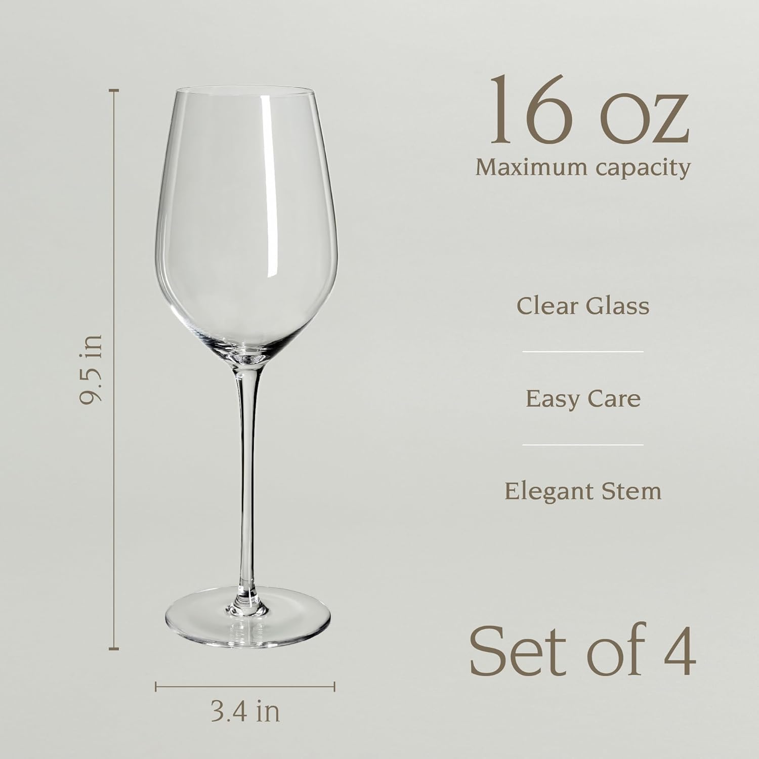 over&back 16oz Traditional Glassware - Set of 4 Classic Stem Drinking Glasses for Parties, Get-togethers, and More - Mouth-Blown - Wine Cups for Kitchen and Dining Room - Clear