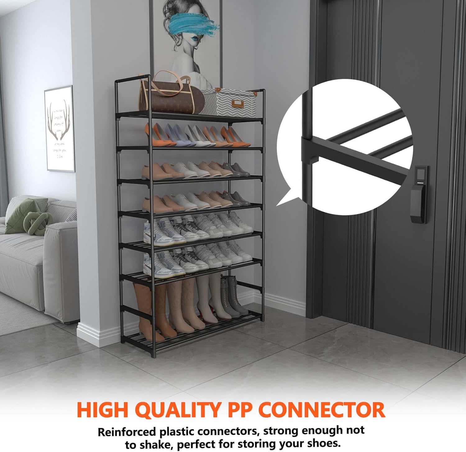 • Sturdy and Durable Metal: The 8 tiers shoe rack is made of sturdy and smooth powder coated metal tubing with corrosion resistant and high quality plastic connectors. Stable, each shelf can hold up to 11 pounds and has a long service life.