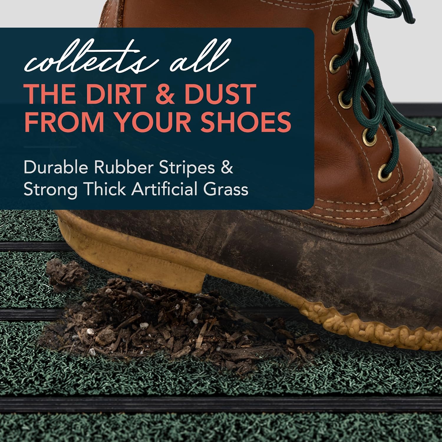 • Perfect Dirt Trapper: Our innovative design combines high quality artificial grass and durable rubber strips for an effective mud removing outdoor door mat. Our outdoor front door mats will keep your doorstep clean and tidy.