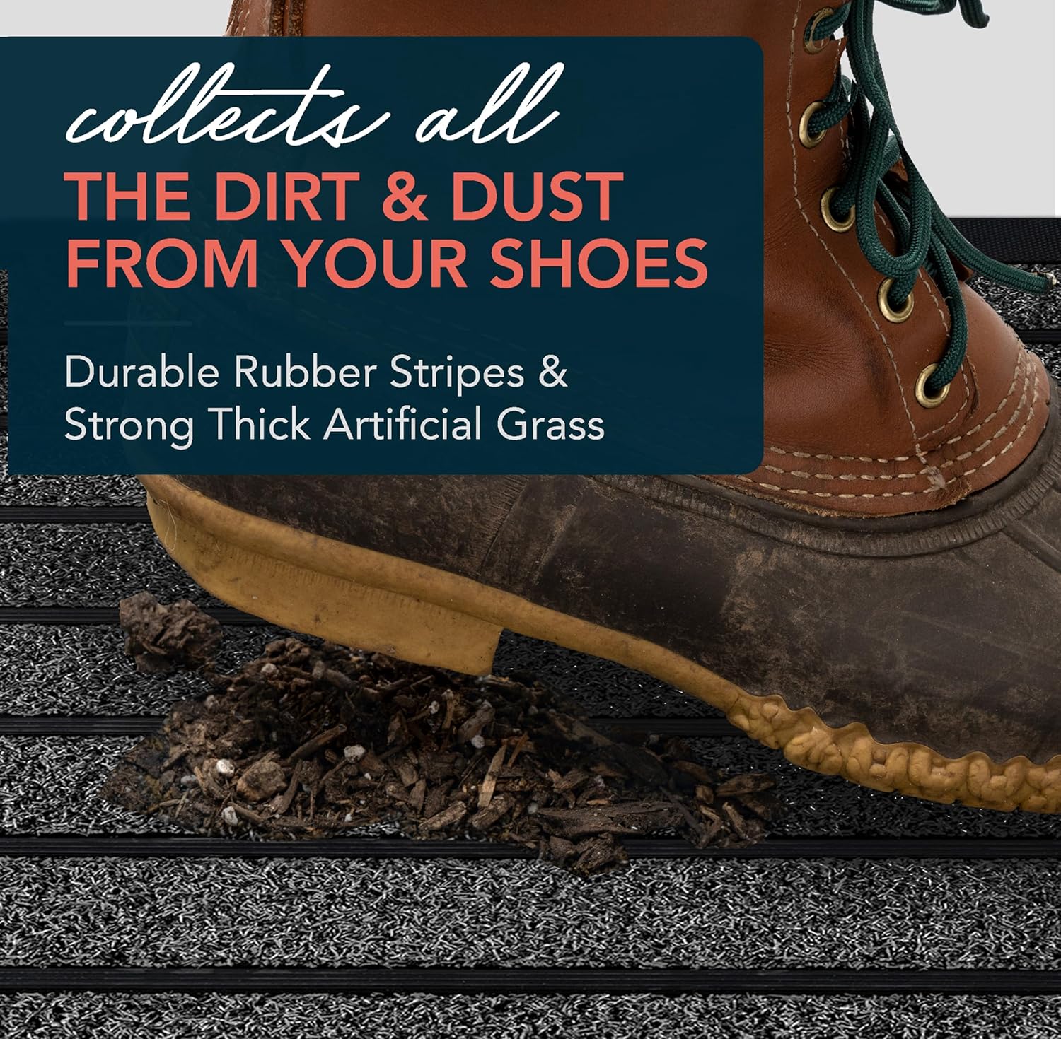 • Perfect Dirt Trapper: Our innovative design combines high quality artificial grass and durable rubber strips for an effective mud removing outdoor door mat. Our outdoor front door mats will keep your doorstep clean and tidy.