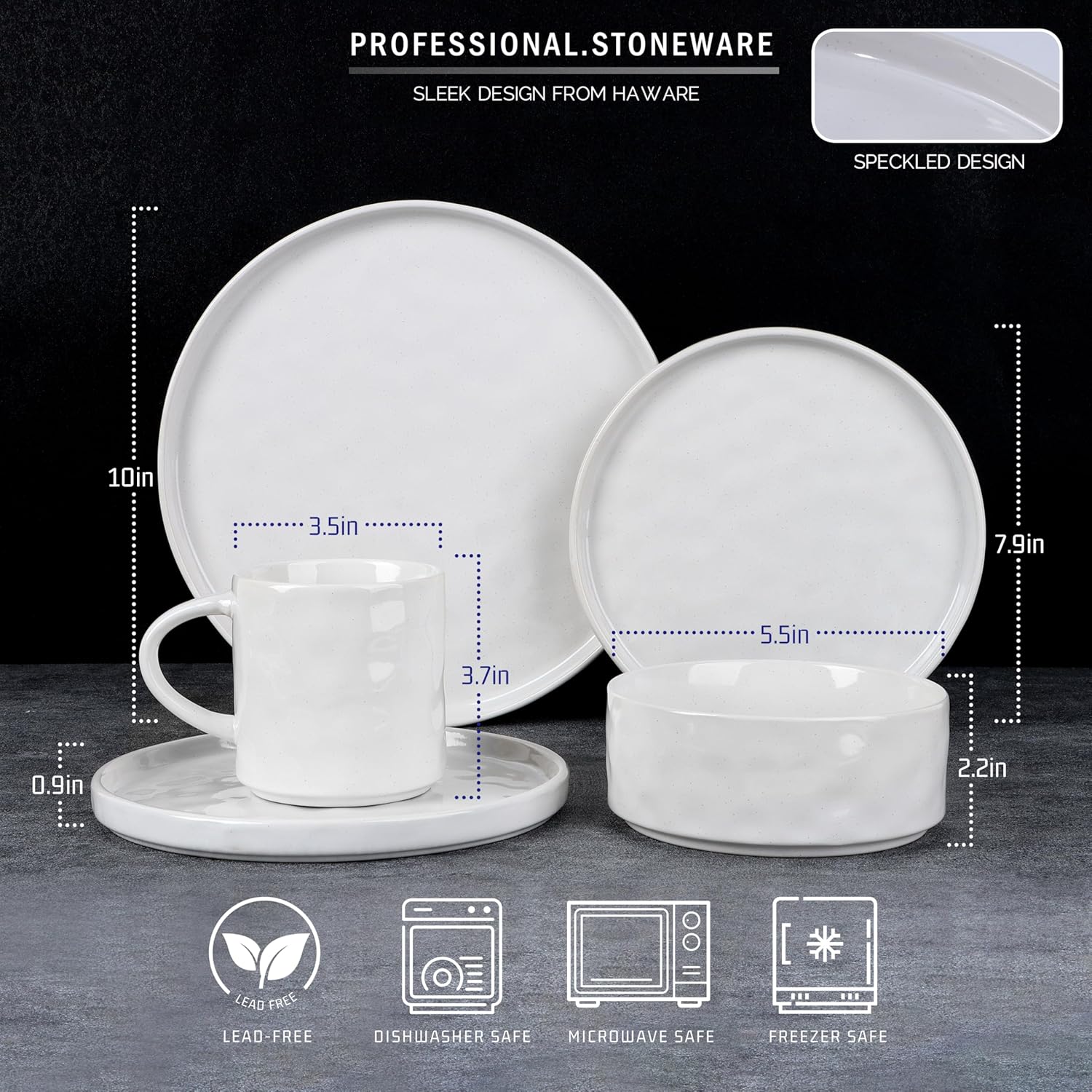 - 【PREMIUM STONEWARE】HaWare dinnerware set are made of high quality clay and glaze, NO LEAD, Non-toxic, Would not leach any harmful substance into your food or drink during using, High temperature fire-made production bring a thicker and stronger structure to the dishware, Sturdy and chip-resistant for long term heavy use, Also they are DISHWAHSERSAFE & MICROWAVE SAFE, Make cleaning and cooking a breeze
