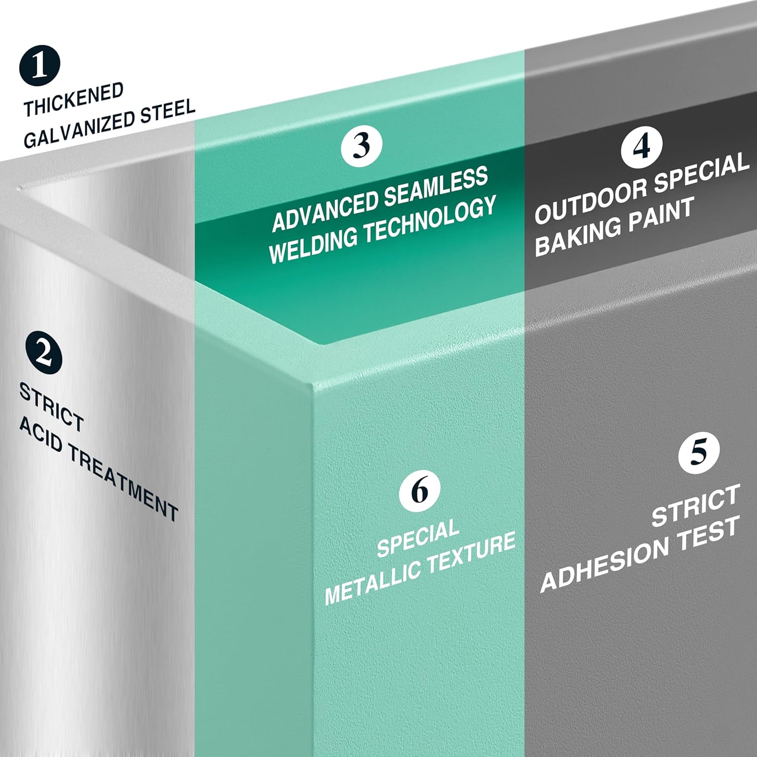 • 【Span Metal Planter】This tall planter box is made from a fully seam welded thick galvanized steel, and adopts outdoor special baking paint, giving the surface a premium metallic color and special texture through the advanced powder injection process.