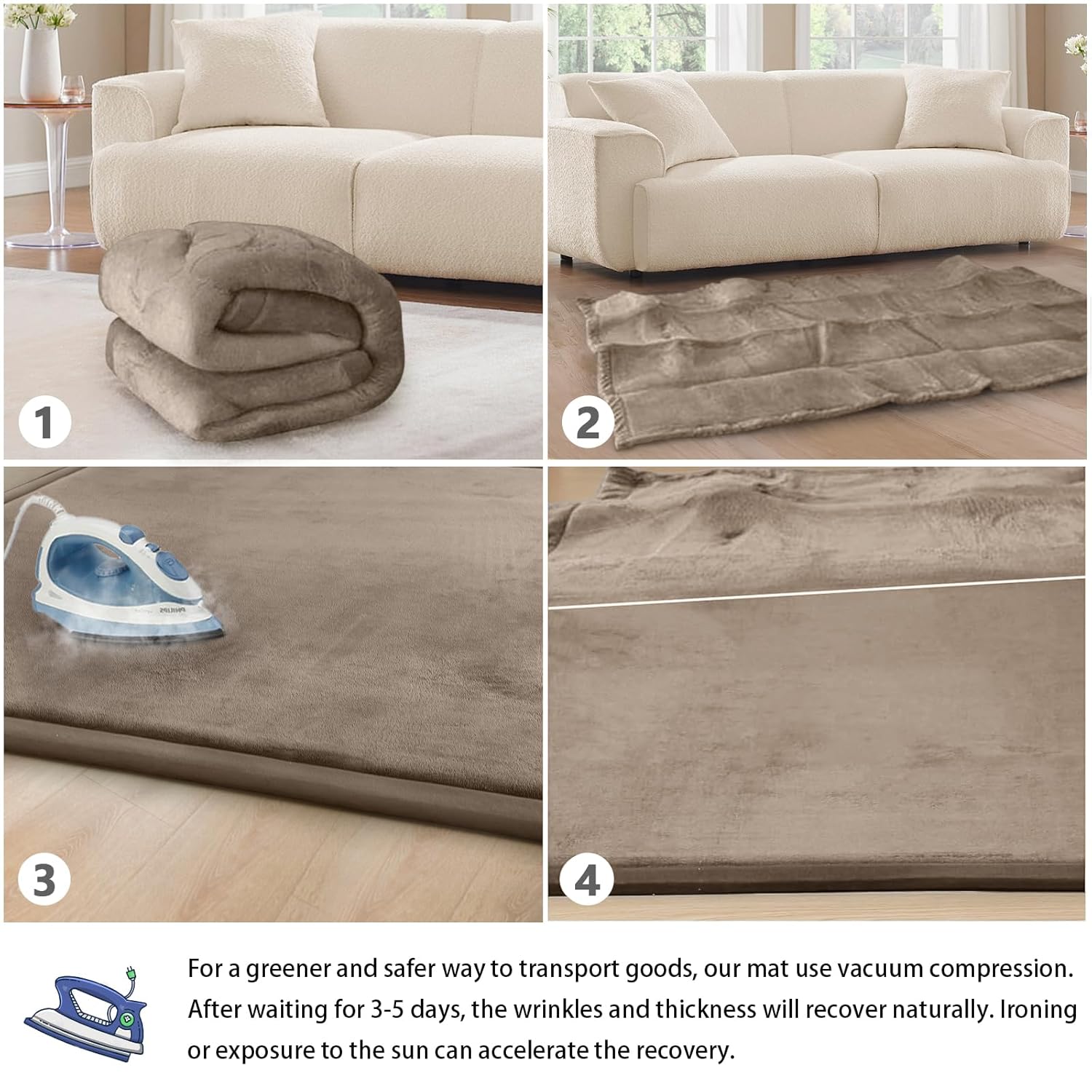 - ๐HOW TO CARE FOR YOUR MAT:When you open the package,it may be wrinkled,very flat and inelastic.Don't fret - this is normal! As long as it is left for 3-5 days, the mat will naturally regain its thickness and elasticity. we recommend steaming or ironing it to speed up recovery. After you have completed the steaming/ironing, your thick floor padded mat should rebound and be ready to use!
